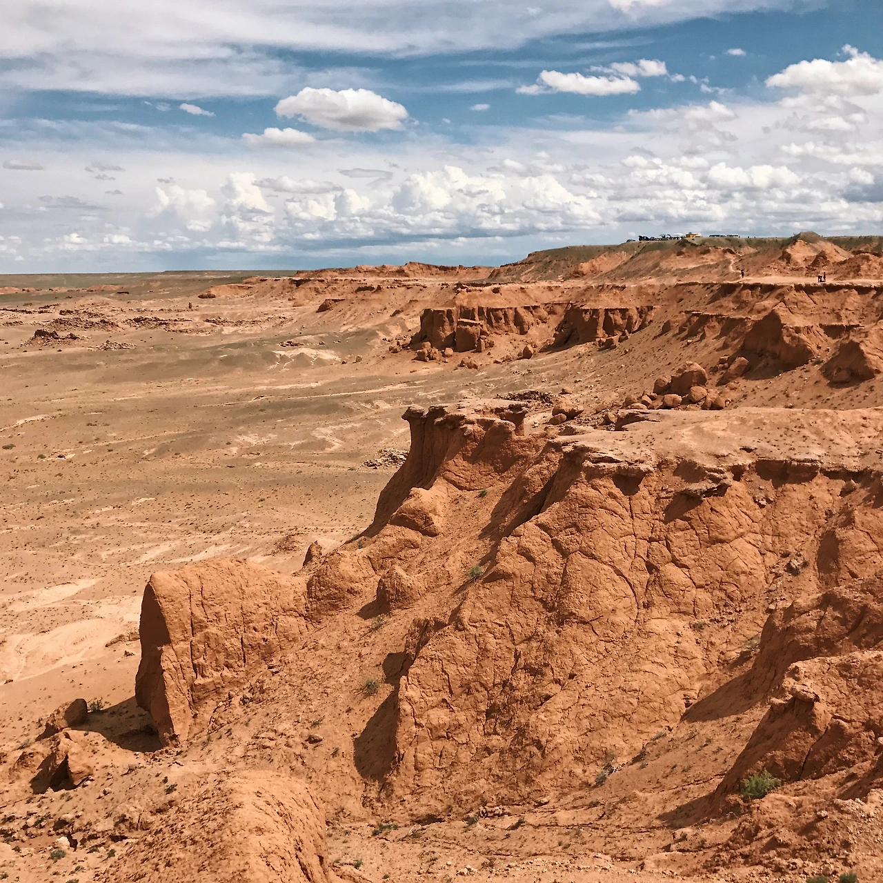 '불타는 절벽' 바양작은 몽골의 그랜드캐년이라는 별명을 갖고 있다. 차강소브라가와 살짝 비슷한 느낌인데 세계 최대의 공룡 화석이 발견되었다고 한다