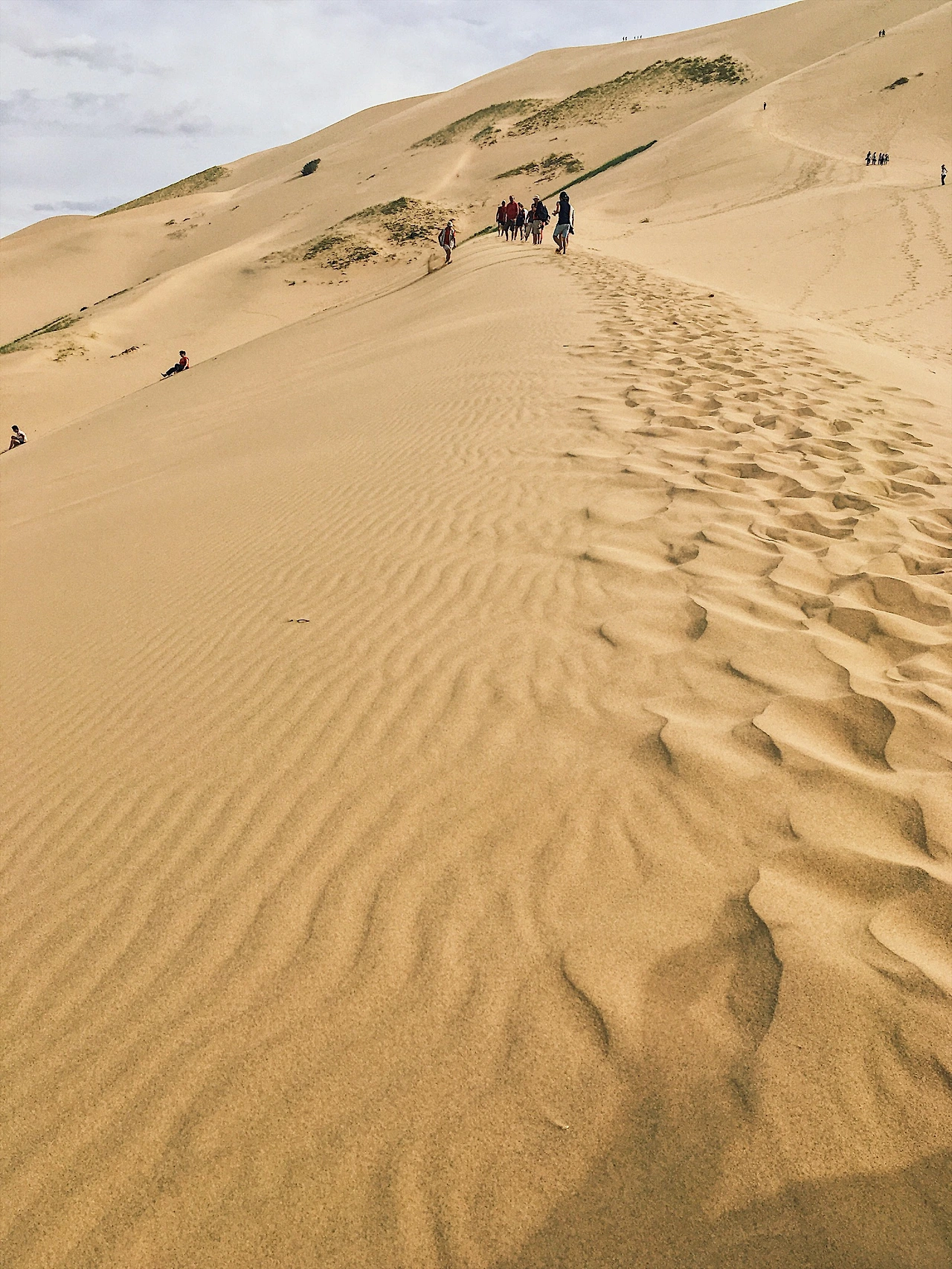 홍고린엘스는 고비 사막에서도 가장 큰 모래언덕으로 모래 알갱이가 바람에 부딪히는 소리가 마치 노래처럼 들려서 '노래하는 언덕'이라고 불린다. 언덕 정상에 오르면 그 소리를 직접 들을 수 있는데, 발이 푹푹 빠지는 모래 언덕을 오르는 것이 생각보다 꽤 어렵다. 만만히 봤다가는 피땀 눈물~~~