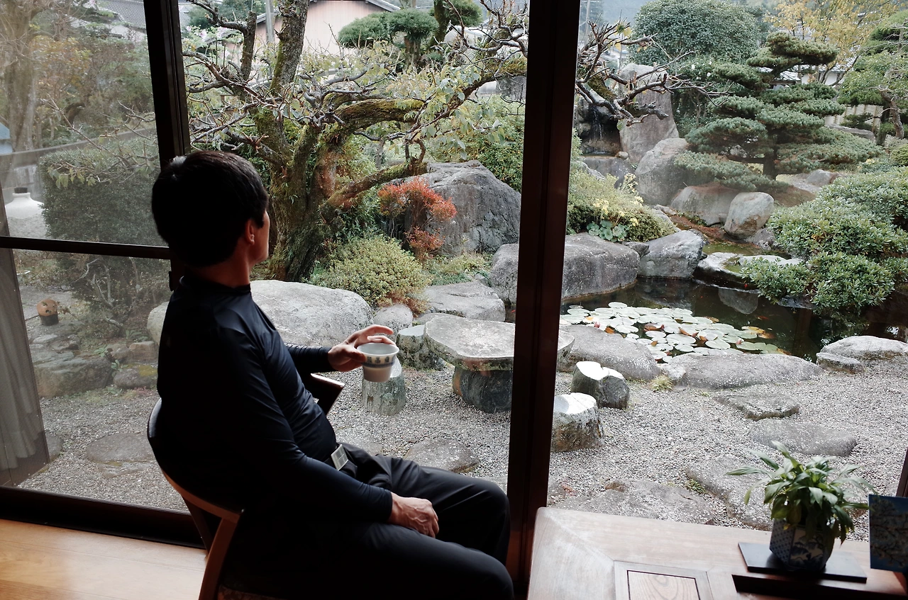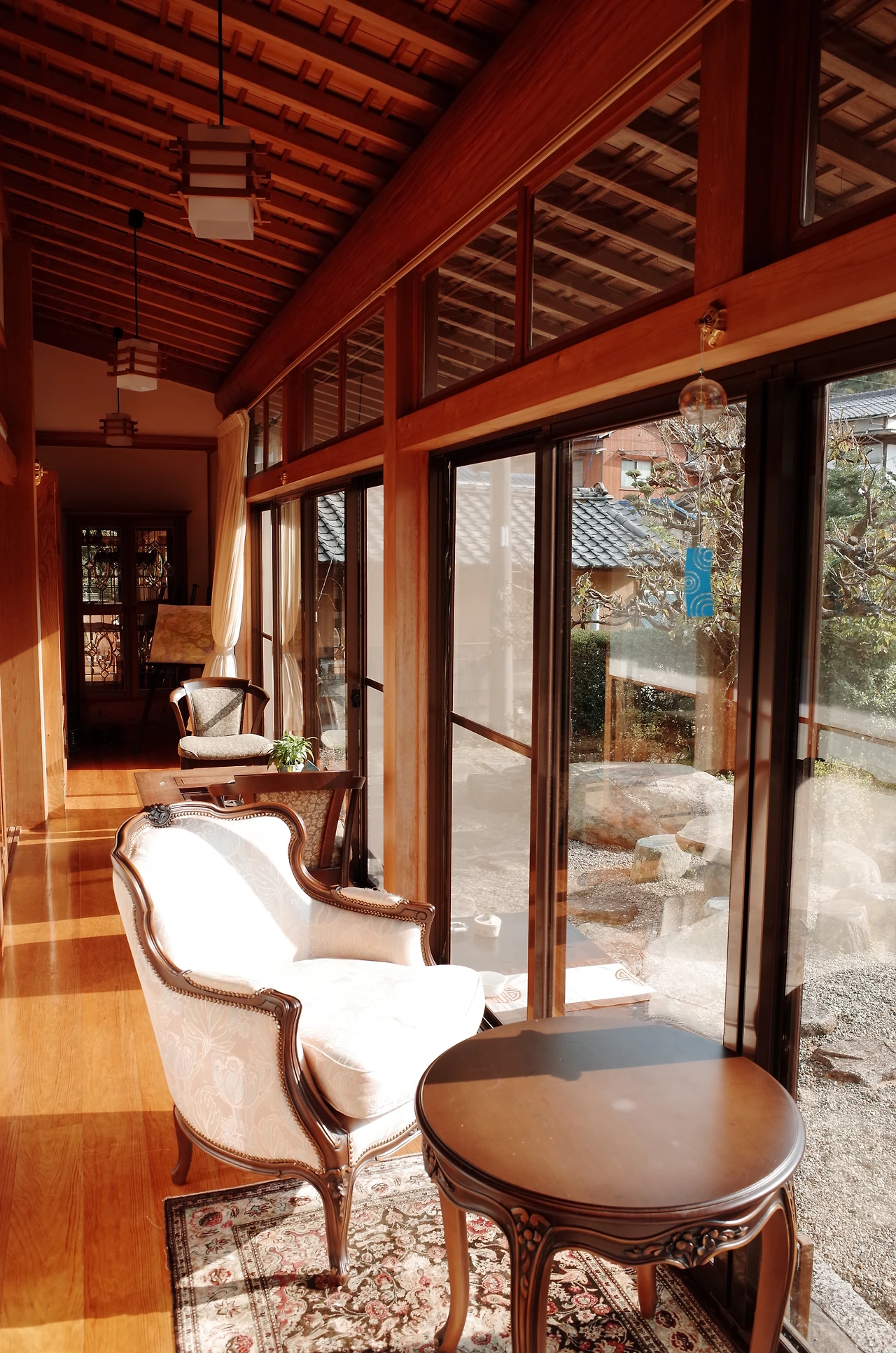 아침을 먹었던 다다미 방에서 바깥문을 여니 이렇게 차를 마실 수 있는 공간이 나온다. 아침 햇살을 만끽하며 이 자리에 앉아있자, 할아버지(호스트인 오사베이씨의 아버지로, 그는 사람들에게 '할아버지'로 통한다. 할아버지라 칭하지만 20대 못지않게 멋지진 아저씨!)가 커피를 내온다.