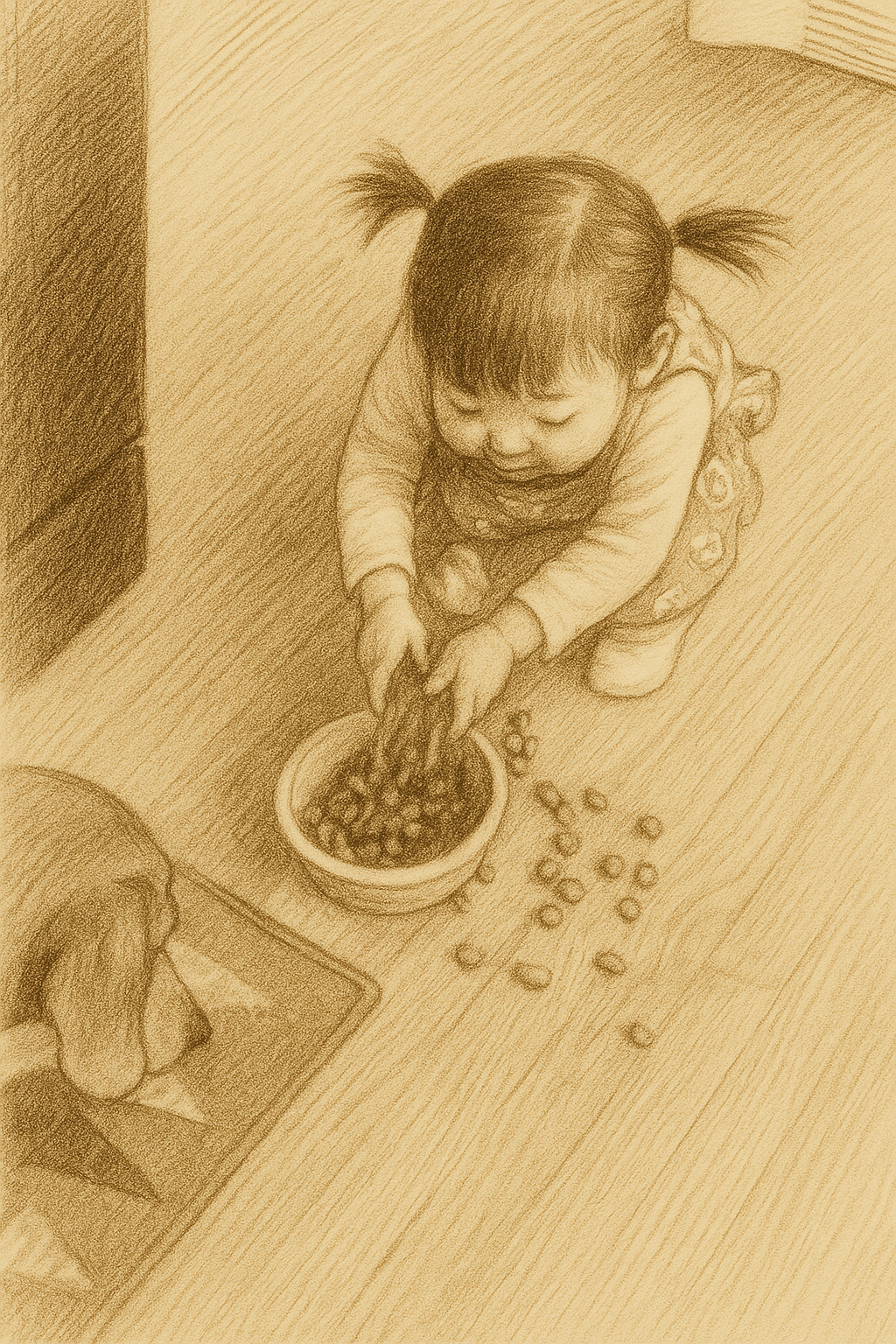 집에 들어가면 가장 먼저 네 침대를 향해 눈길을 주면서 네 이름을 불러. 엄마 왔어! 하고. 잠자러 가기전에 자꾸 무언가 빠뜨린것 같은 기분은 아마 네 마지막 화장실을 늘 챙겼던 버릇때문인것 같아. 팬트리 한 구석에 우리 가족이 먹는 쌀 봉지 옆에 있었던 네 사료봉지, 한동안 그 자리가 너무 허전하더라. 과일 먹는 소리를 귀신같이 알아채던 너. 아무리 소리 안내고 사과를 입에서 조용히 먹어도 어디선가 기척을 내며 또각또각 걸어오는 네 덕분에 사과를 자르다가도 딸기를 씻다가도 자꾸 네 소리를, 네 모습을 찾게 돼. 긴 시간 집을 비우면, 집에서 네가 기다릴것 같아서, 쉬 마려우면 어쩌지, 배고프면 어떠지, 자꾸 있지도 않은 네 걱정을 하게 돼.