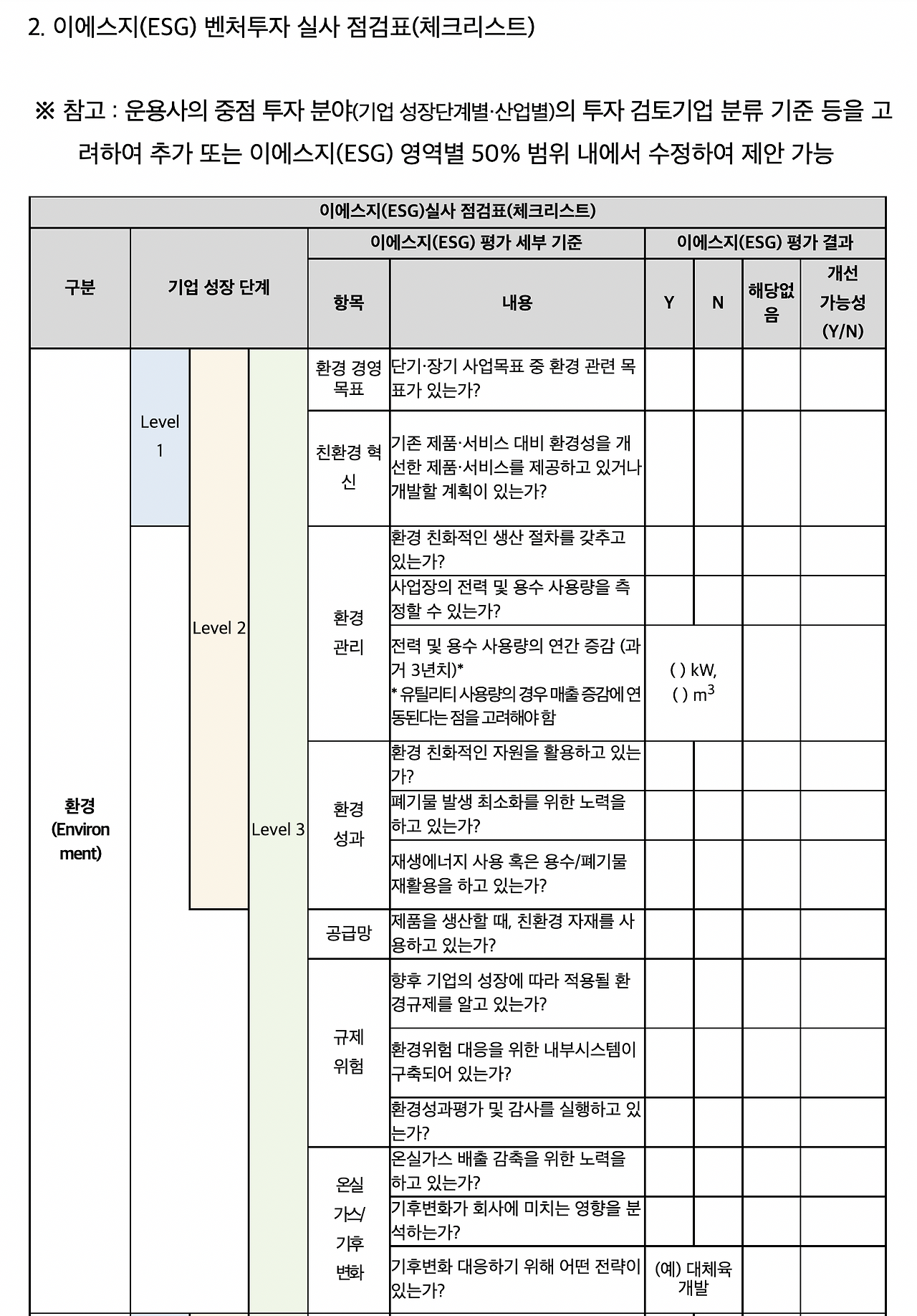 「이에스지(ESG) 벤처투자 표준 지침(가이드라인)」