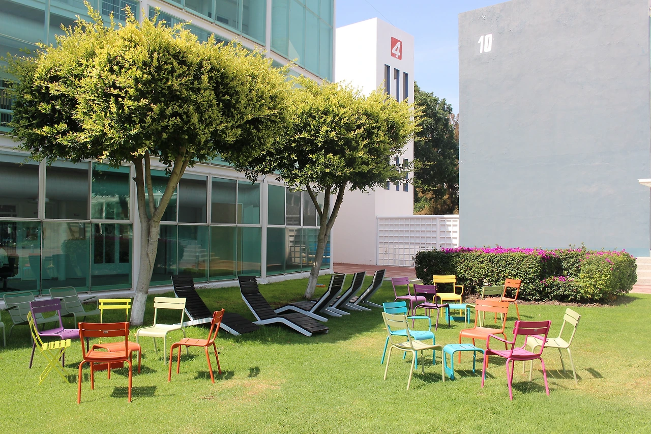 사진은 멕시코의 한 대학교 캠퍼스 내부 모습이다. 이 얼마나 자연친화적인가? 이와 같은 정원 겸 휴식처가 캠퍼스 도처에 널려 있다. 사진에서 나무에 의해 그늘지어진 공간엔 반쯤 누울 수 있는 의자를 배치하여 학생들이 휴식을 취할 수 있게끔했다. 반면 그늘없이 햇볕이 들이치는 공간엔 고정되지 않는 의자를 배치하여,사용자들이 의자를 편의에 맞게 옮겨가며 서로 대화를 나눌 수 있는 공간을 형성할 수 있도록 했다.
