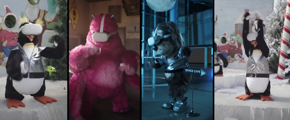 주인공 인형이 처한 위기 탈출의 열쇠가 메타가 마련한 VR 속으로 들어가 행복감을 되찾는 것일거란 극복 서사는 시청자들로선 쉽게 예상 가능한 것이다. 예상 가능하기 때문에 크게 실망할 것도 없다. 애초에 1분짜리 광고에서 기막힌 반전이나 복잡한 구성을 취하는 것도 시청자들에게 혼란만 가중시킬 뿐이다. 하지만 문제는 이 광고가 VR 안에서의 행복감을 표현하는 방식인데, 이 부분에서 메타의 선택이 정말 끔찍하다.