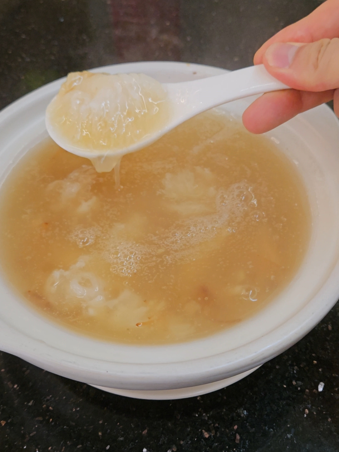 그런데 애초에 샥스핀은 식감이라고 하지 않는가? 고든 램지는 샥스핀의 식감을 당면에 비유했는데 흐물거림은 비슷할지 모르겠으나 식감은 당면보다 훨씬 오독오독하다. 목이버섯 같기도 하다. 곤약으로 얇은 면을 뽑으면 이런 식감일 것 같다.