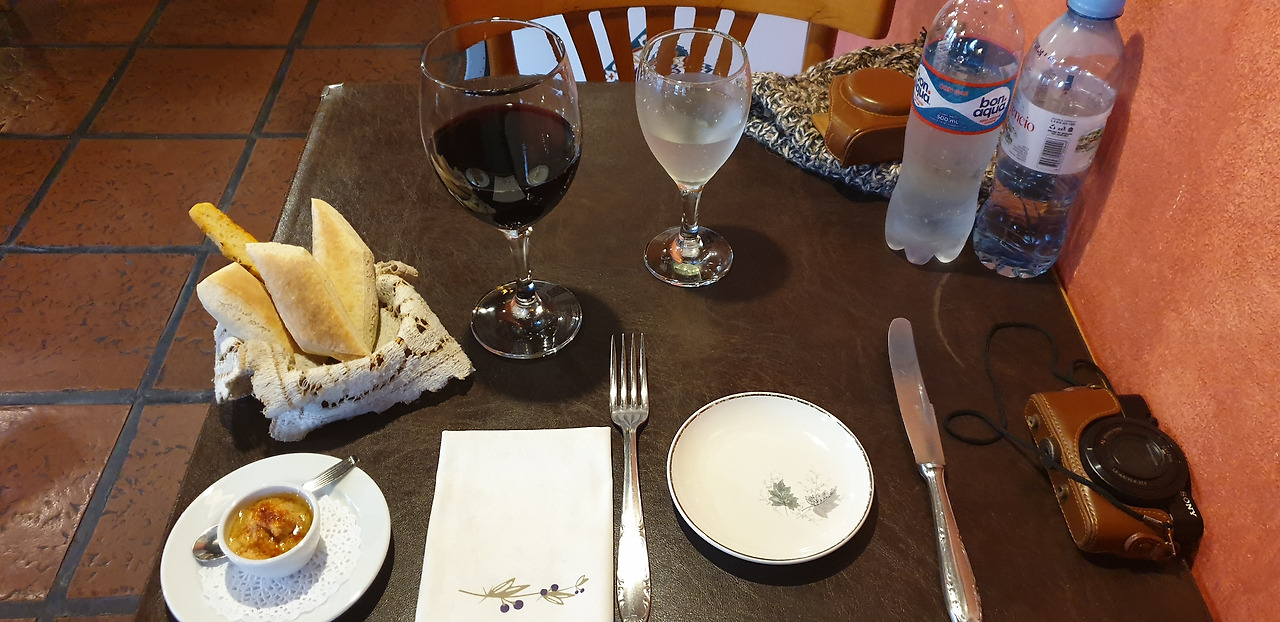 빵이랑 곁들인 소스도 맛나다. 캬. 고기는 얼마나 맛있을까. 어제 미디엄 레어를 먹어봤으니 오늘은 레어를 시켰는데 고기 자를 때 피가 뚝뚝. 잘 안 잘린다. 솔직히 고기는 생각보다 별로였다. 아르헨티나 고기가 나랑 잘 안 맞나? 그래도 주인아주머니도 친절하시고 알딸딸한 와인도 좋고.