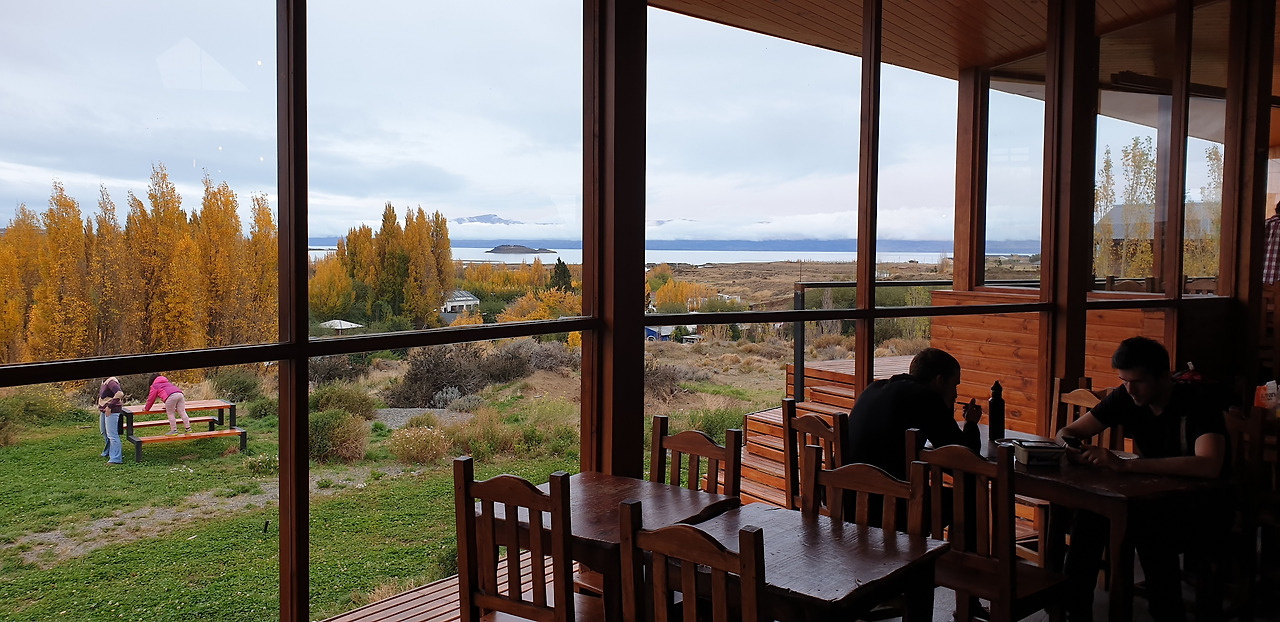 내가 고른 숙소 아메리카 델 수르(America del Sur) 호스텔은 시내에서 도보 15분 정도로 거리가 조금 있지만 언덕 위에 있어서 아르헨티나 호(Lago Argentino)가 한눈에 보였다. 노란 은행나무 잎과 어우러진 새파란 호수를 호스텔에서 바로 볼 수 있다니. 하루에 $10 내고 묵기에는 황송하다.