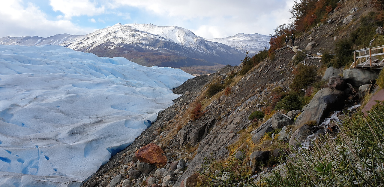 산길 바로 옆에 빙하가 펼쳐져 있다. 어떻게 이렇게 경계가 극과 극으로 나눠져 있을까.
