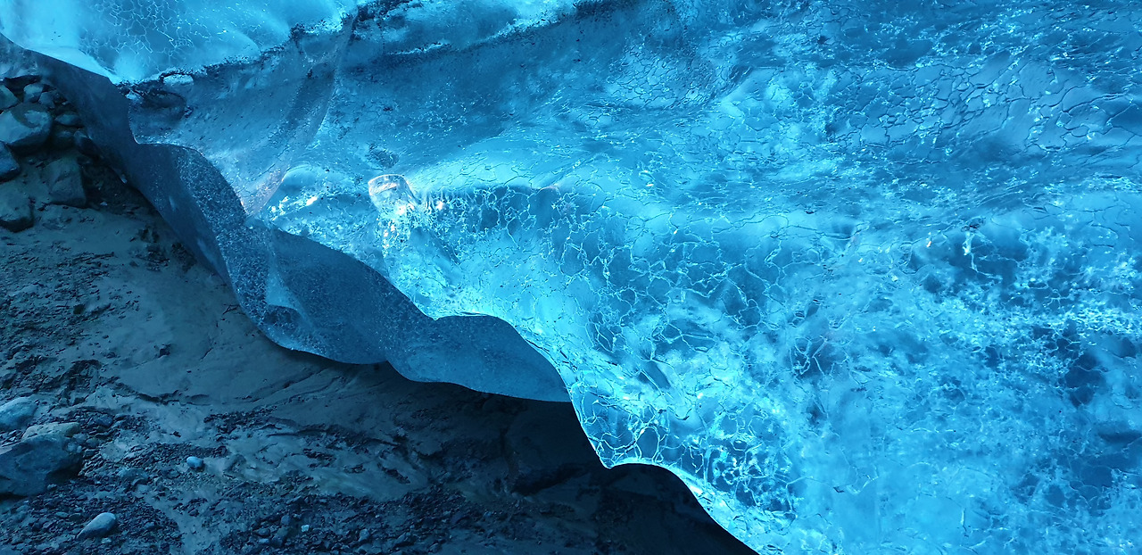 얼음 동굴로 들어가는 길. 색이 신비롭다. 얼음 결정이 무척 아름답다.