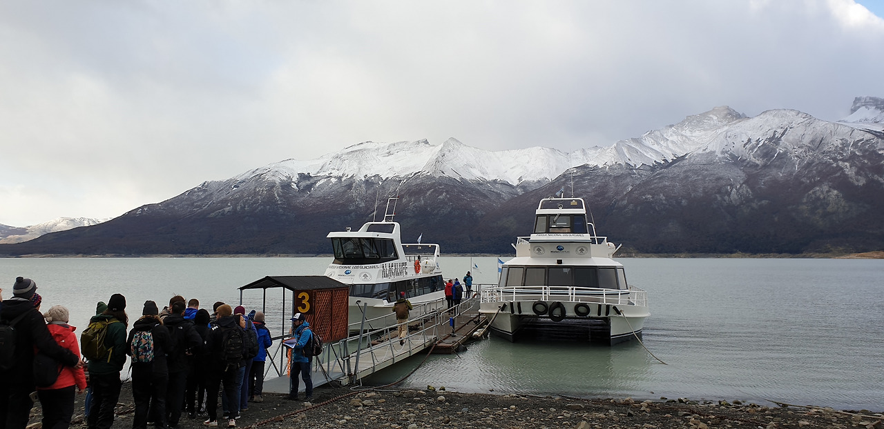 모레노 빙하를 둘러보고 나서 트레킹 할 포인트로 이동하기 위해 보트로 향한다.