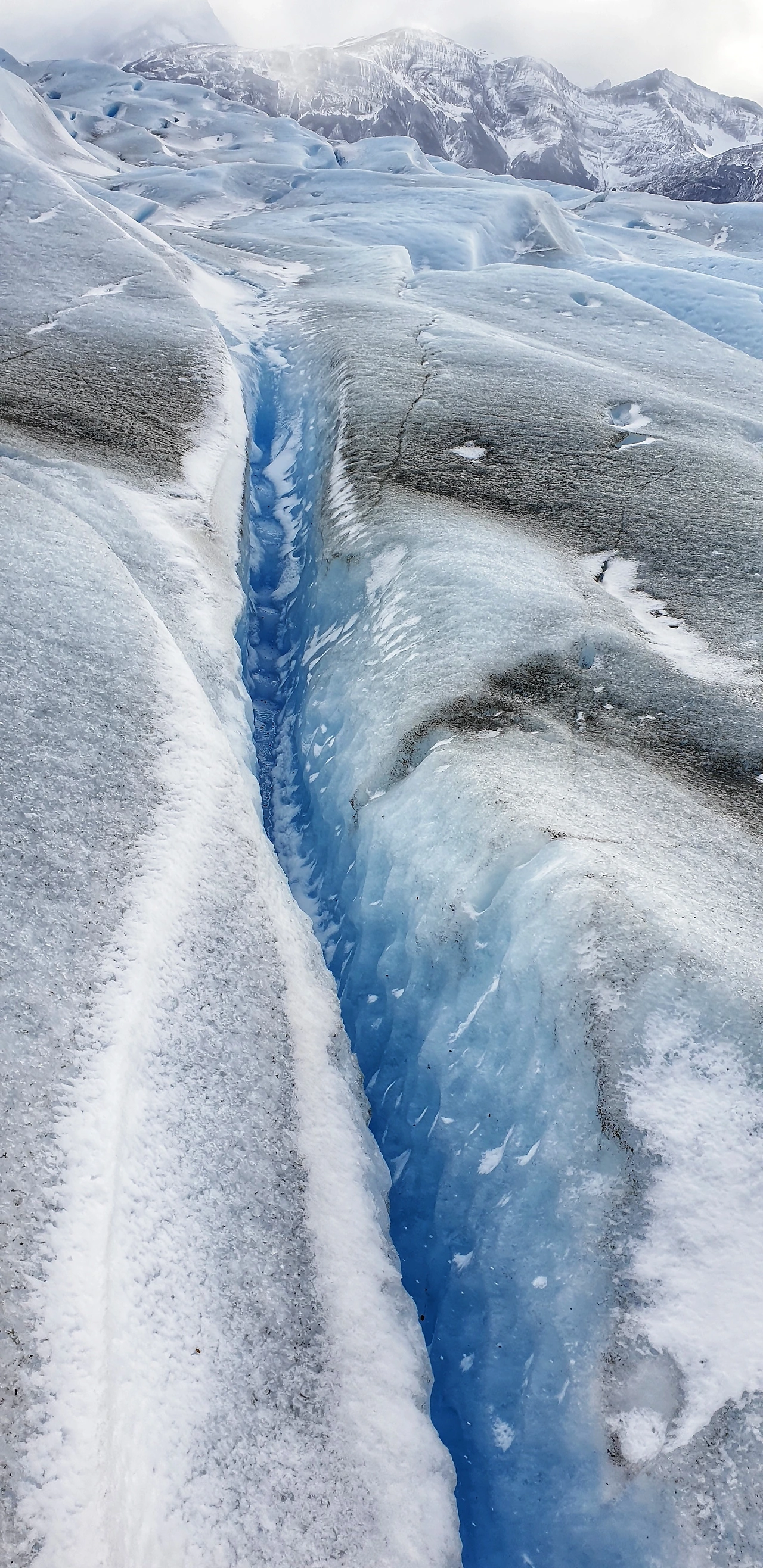 말로만 듣던 크레바스. 아직 형성 중이다. 4/30이 빅 아이스 투어의 마지막 날인데, 5월부터는 눈이 내릴 수 있어서 그렇단다. 눈이 내리면 그 아래에 크레바스가 있는지 구멍이 있는지 알기가 어려워 위험하단다. 그래서 5월에는 미니 아이스 투어만 가능하다. 트렉킹 할 때 하얗게 눈 덮인 얼음판을 걷을 줄 알았는데 생얼음판을 걷게 된 이유가 있었다. 눈이 오면 멋질 거라 생각만 했는데 다 명암이 있는 거다.