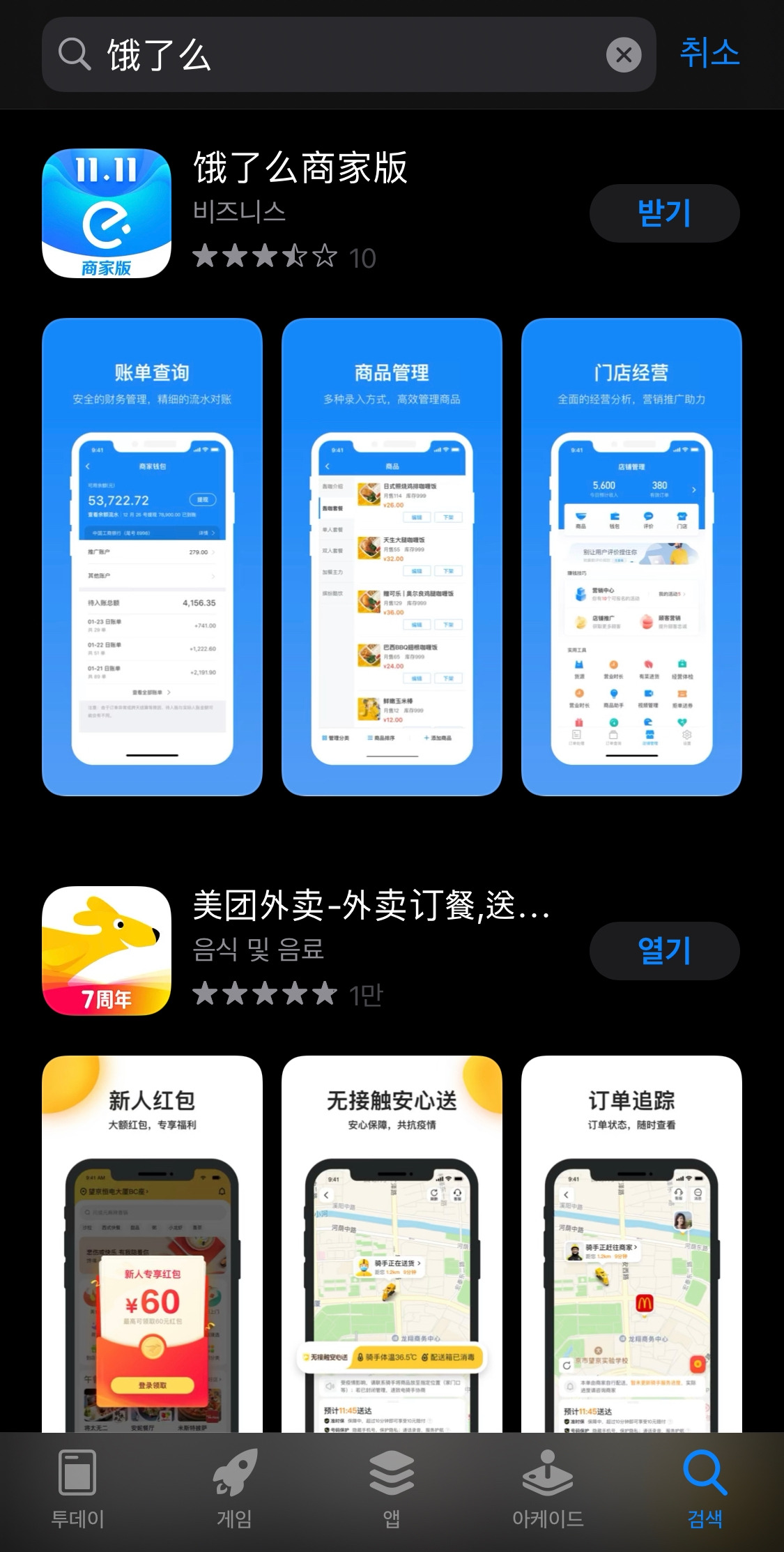 궁금증이 생겨 중국 배달 앱에 대해 찾아보니 대충 이렇다.