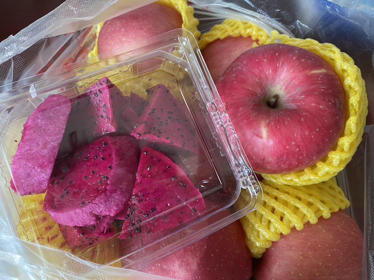 천사분께서 감사하게도 싱싱한 과일과 생명수를 하사하셨다. 이래서 방 번호를 물어보셨구나. 역대급 감동이다. 한국에 있을 때 아침에 사과를 먹었어서 사과 생각이 났는데 어찌 아시고. 게다가 귀한 용과까지. 한 입 베어 물으니 너무 맛있다. 게눈 감추듯 사과 한 개도 클리어. 점심 도시락이 눈에 안 들어온다.