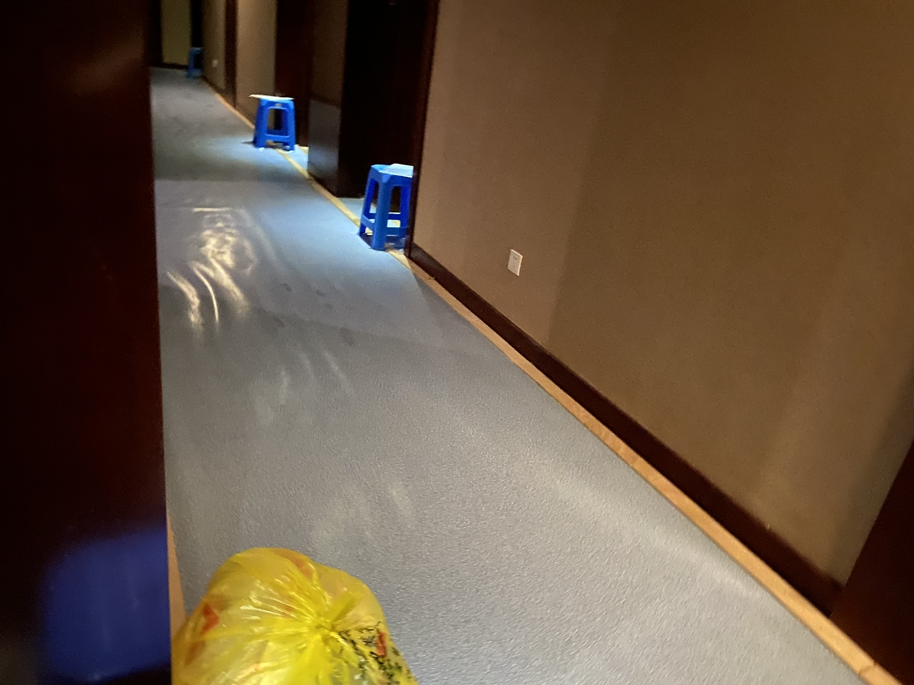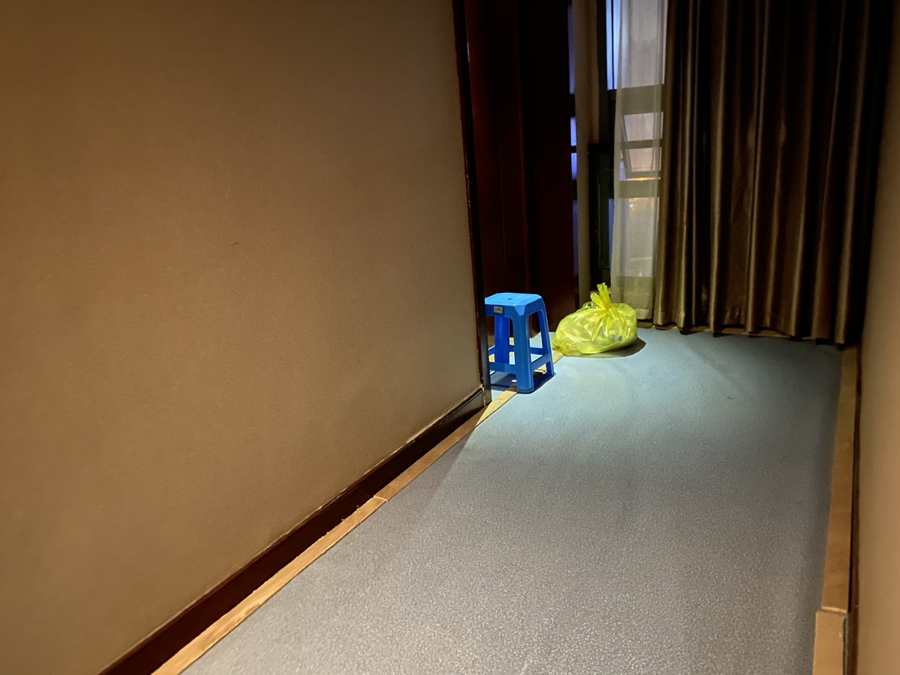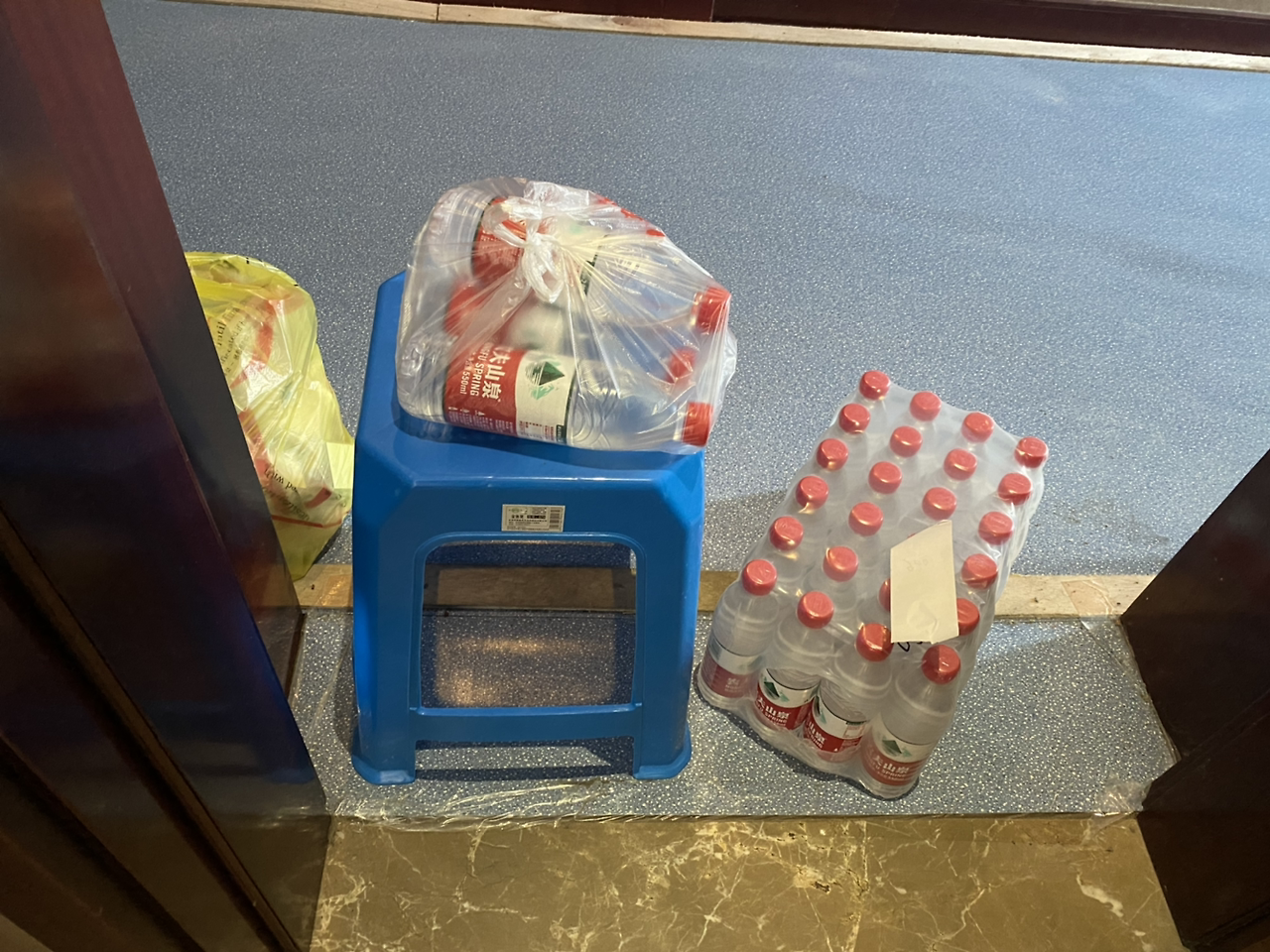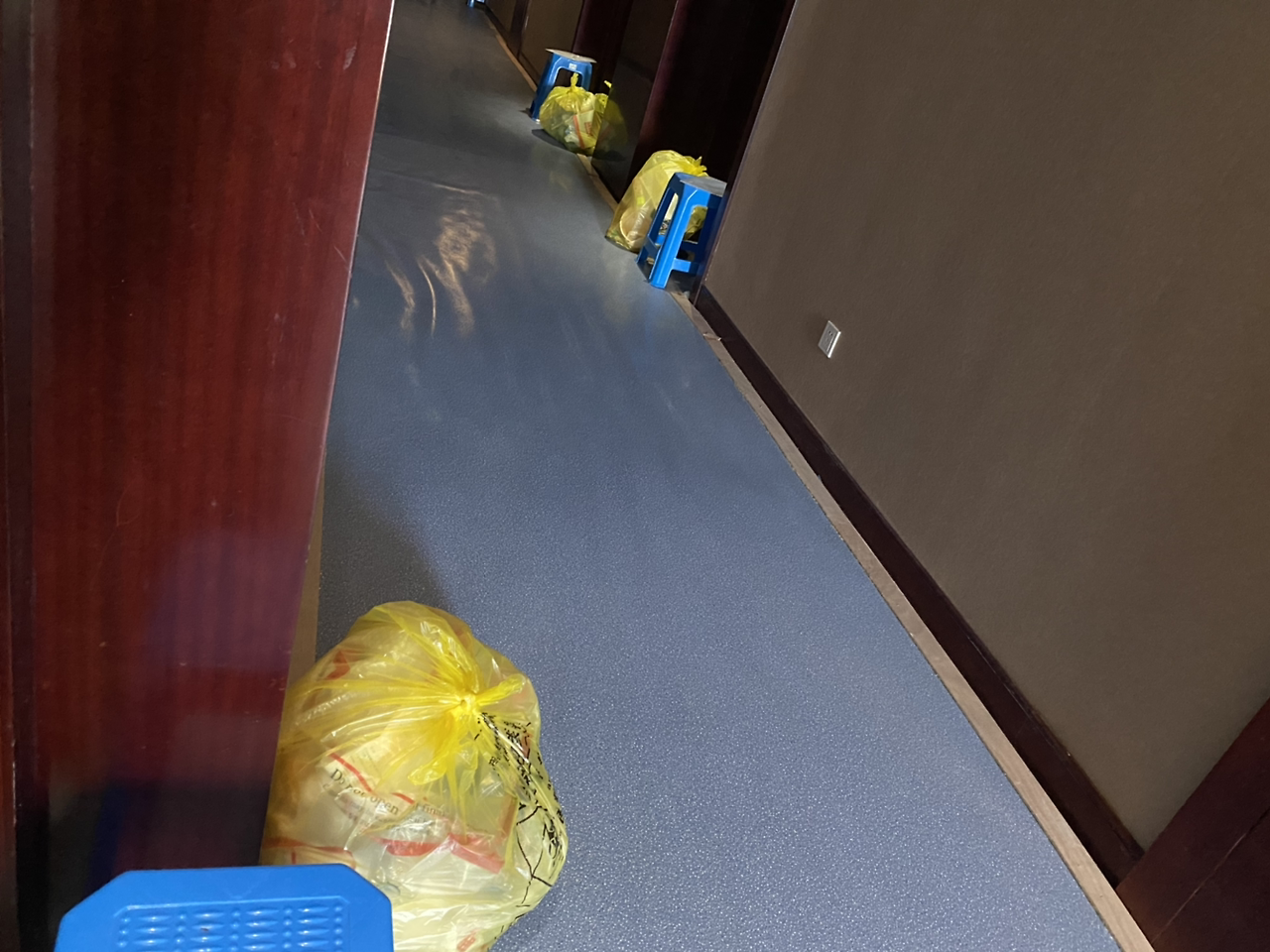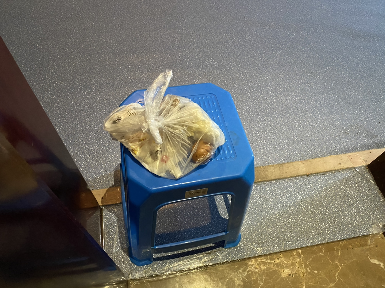 5시 40분 즈음 또 노크 소리. 문 밖을 내다보니 내 쓰레기봉투가 안 치워져 있다. 그리고 다른 방 의자에는 입소 첫날 안내 서류를 담아준 투명 봉투가 보인다. 음, 왜 다르지?