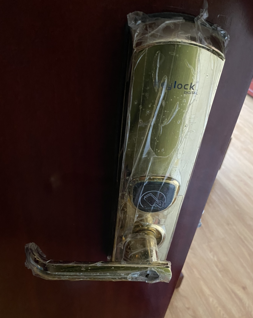 문 손잡이는 언제 해놨는지 테이프로 봉인 중. 방 안에 얌전히 있으란 거겠지?
