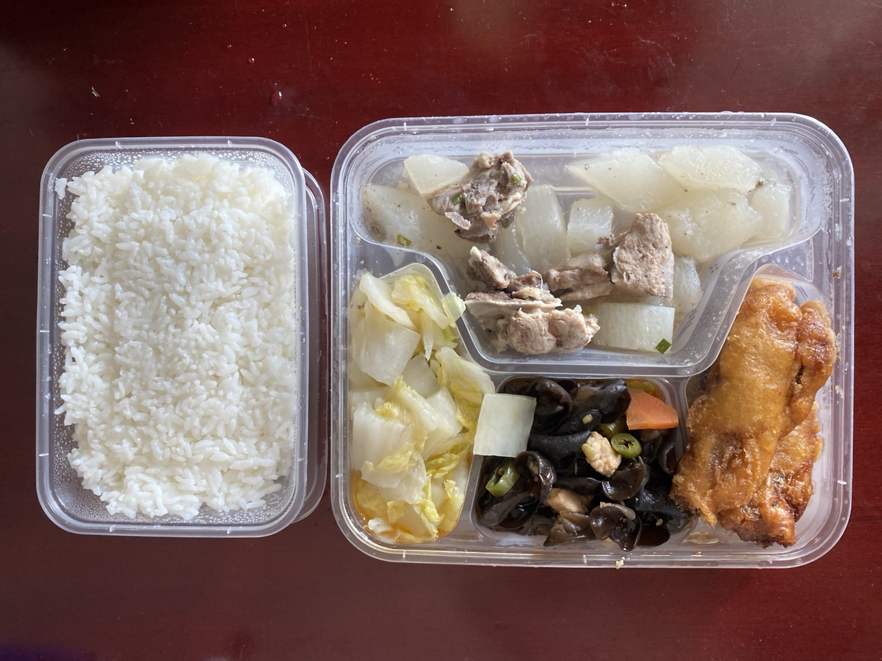 오늘은 탄수화물 위주네? 비상용으로 가져온 참치캔을 꺼내야 하려나? 만두도 속이 없는 그냥 흰 만두겠지?