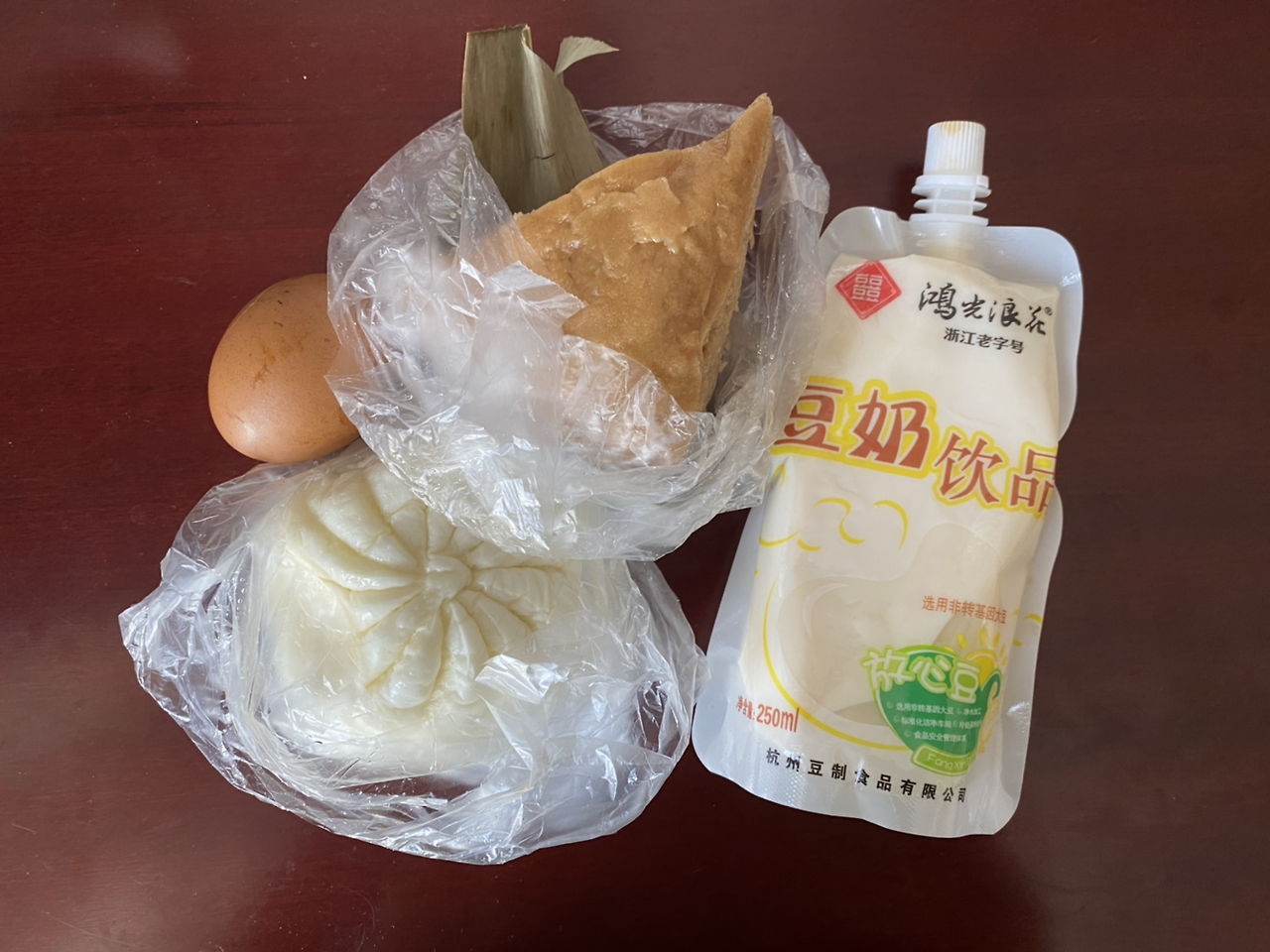 7시부터 ‘똑똑똑’ 소리를 기다리며 귀를 쫑긋 세우고 있었다. 그런데 7시 반이 넘어도 노크 소리가 안 들린다. 이제는 노크를 안 해주나 싶어서 문 밖을 열어보니 달걀이랑 또우지앙(豆浆, 두유)이 보인다. 어제랑 같은 메뉴인가?