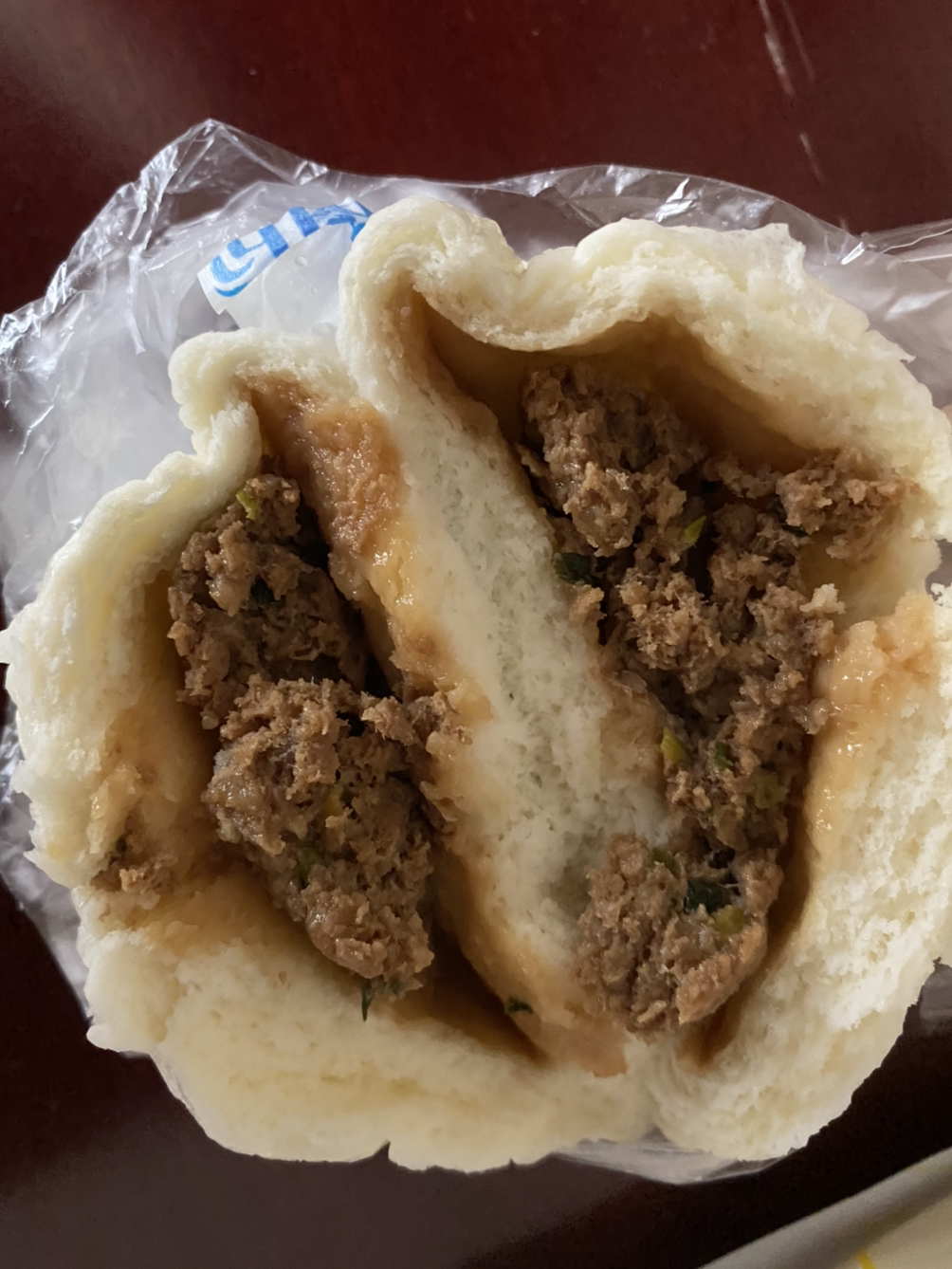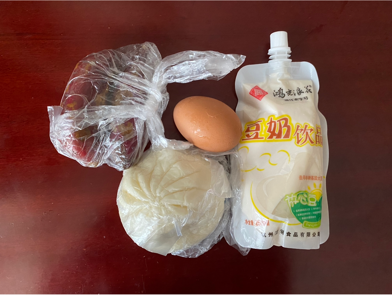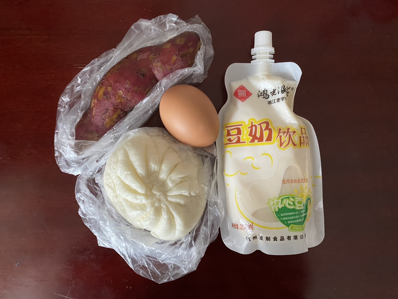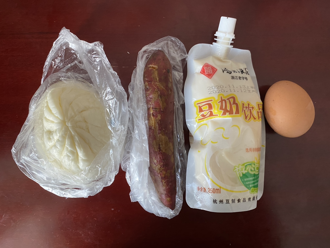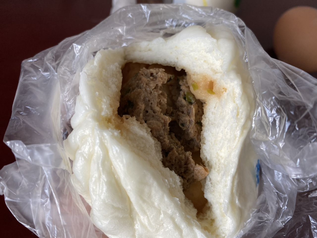 1) 아침: 전날 야채 만두보다는 속이 덜 실한 고기만두(그래도 맛있음), 고구마, 달걀, 고구마 때문에 따뜻해진 또우지앙