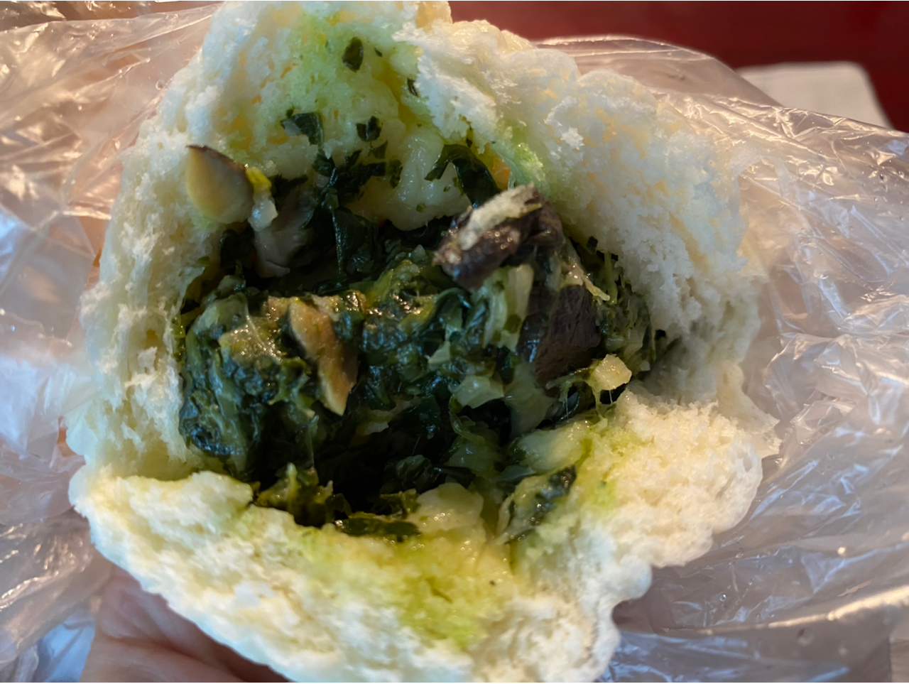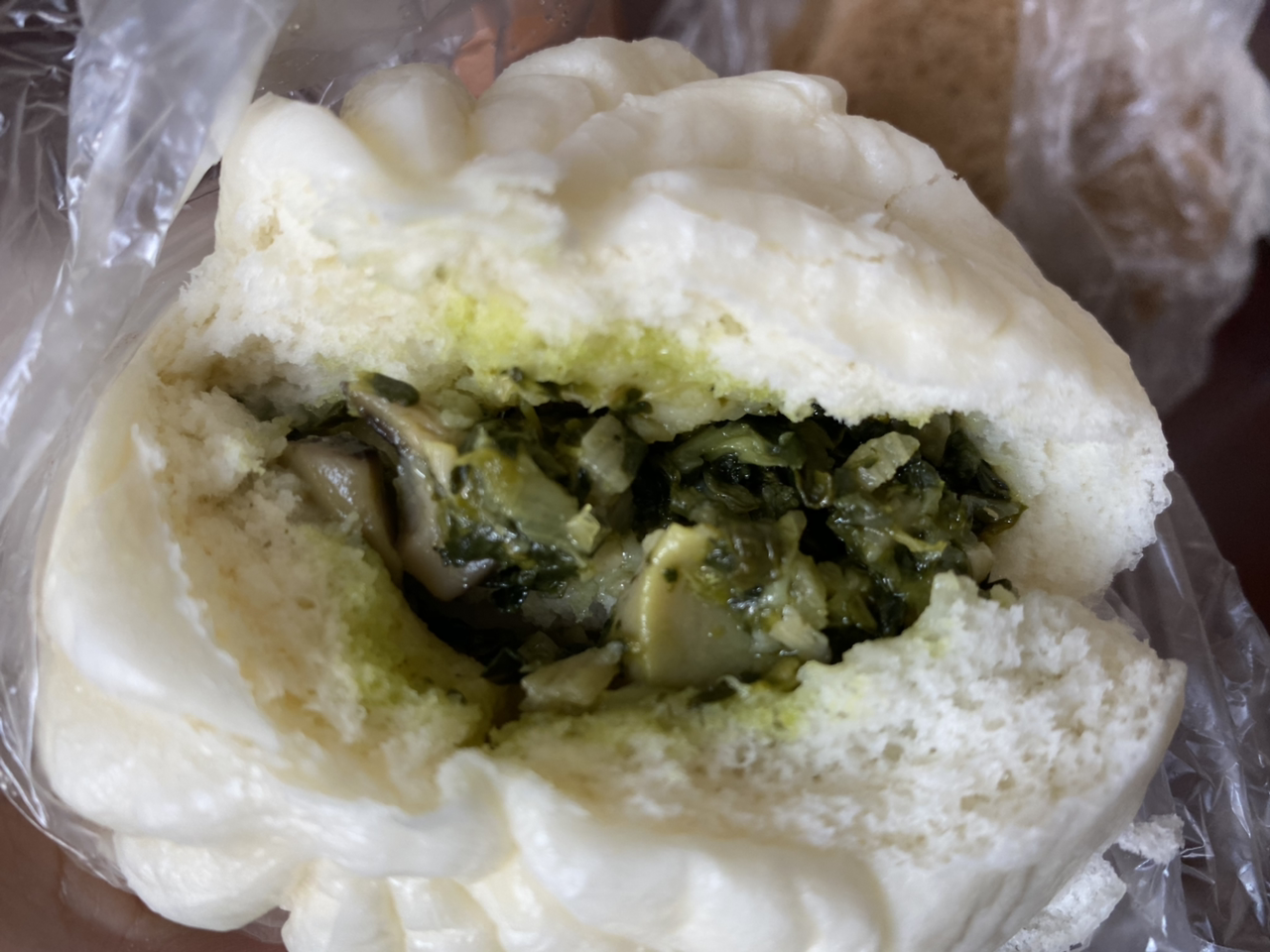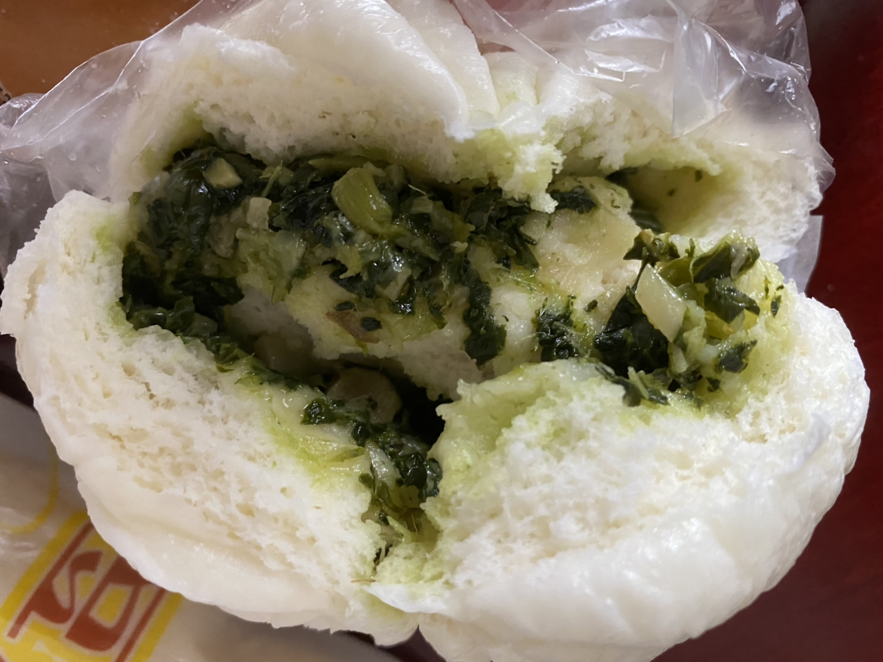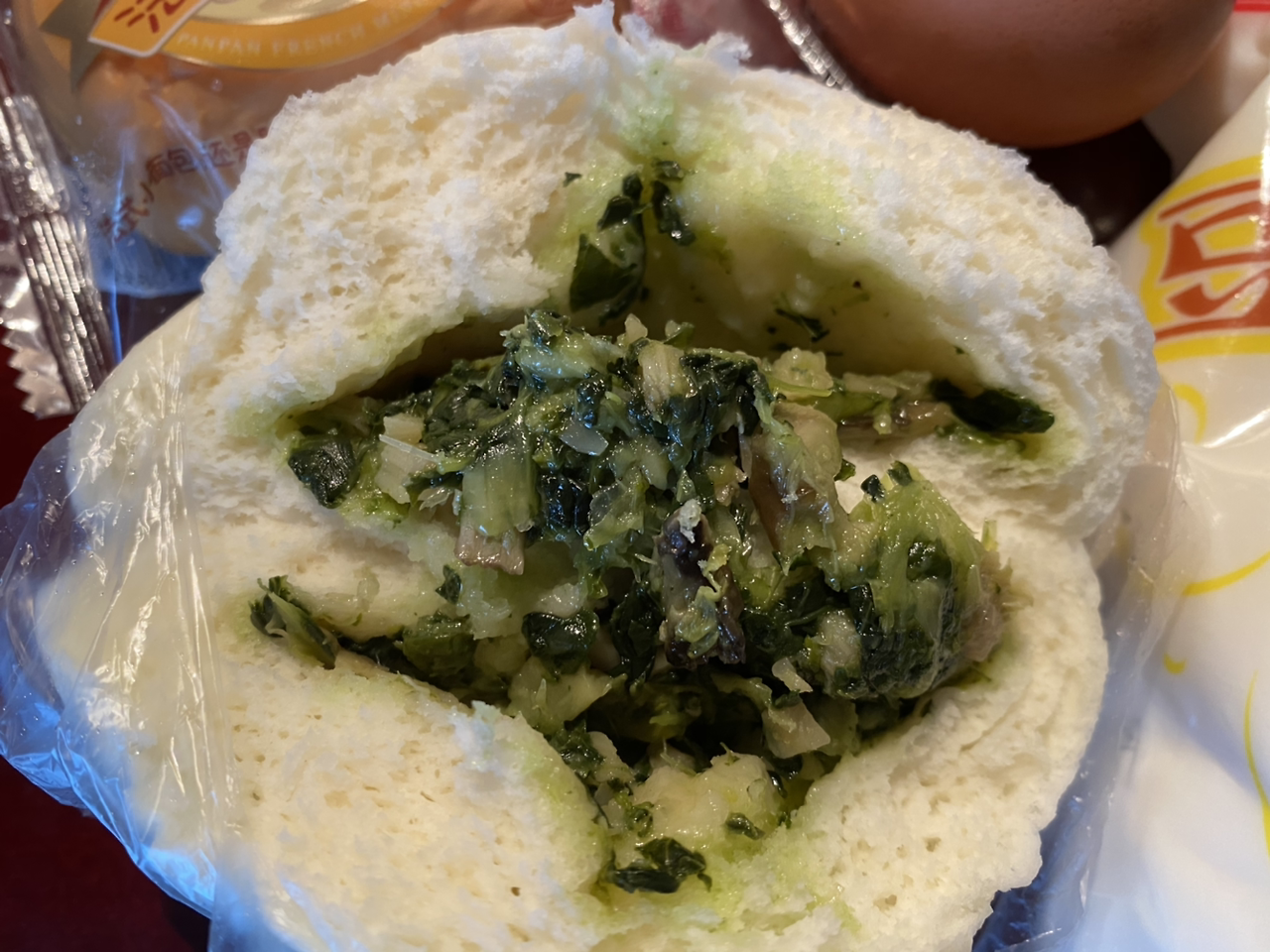 1) 아침: 무슨 잎에 싸인 보리빵, 야채와 버섯이 가득해서 정말 맛났던 야채만두, 달걀, 미지근해서 전날보다는 아쉬웠던 또우지앙