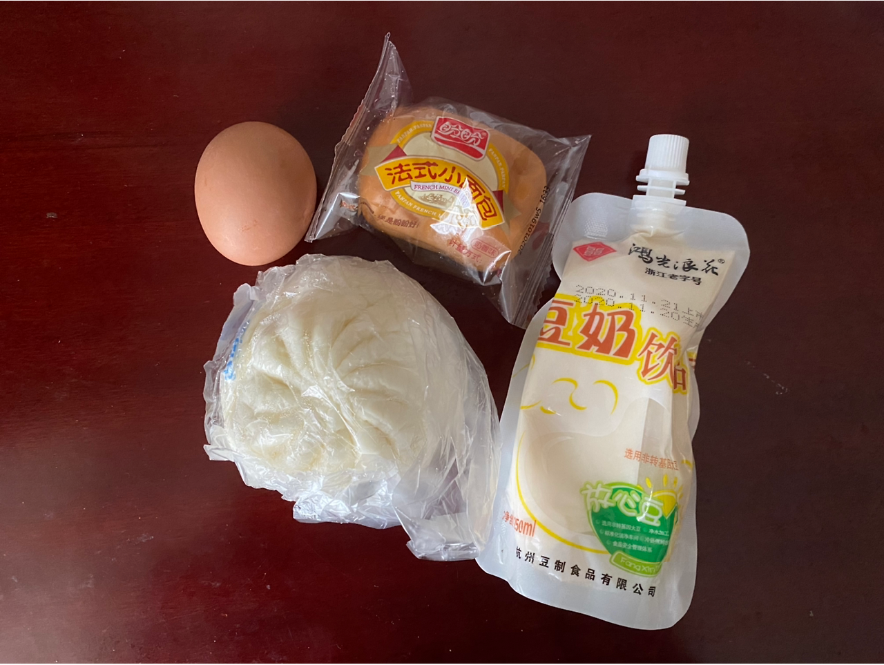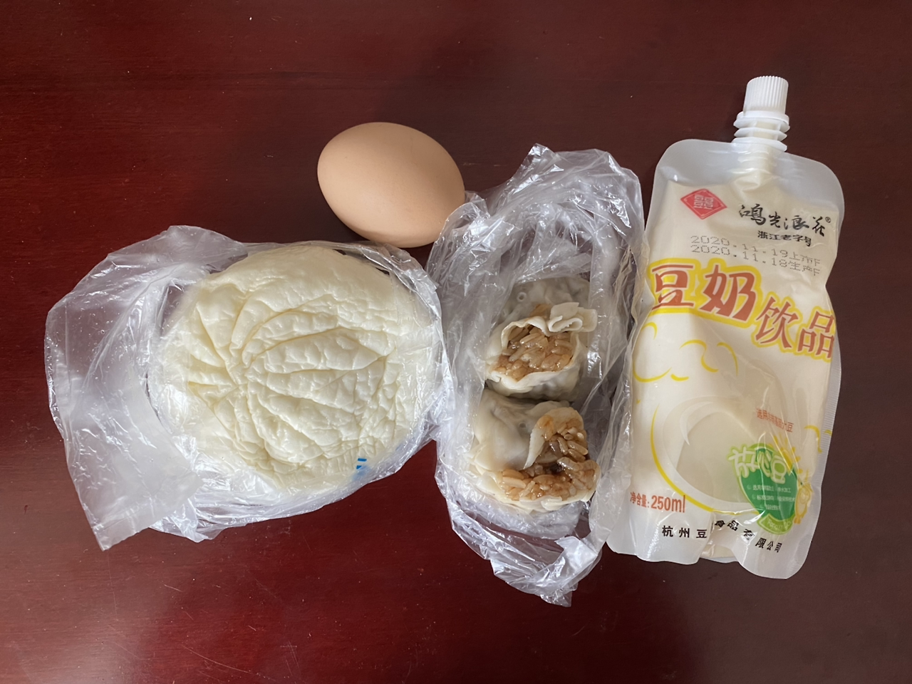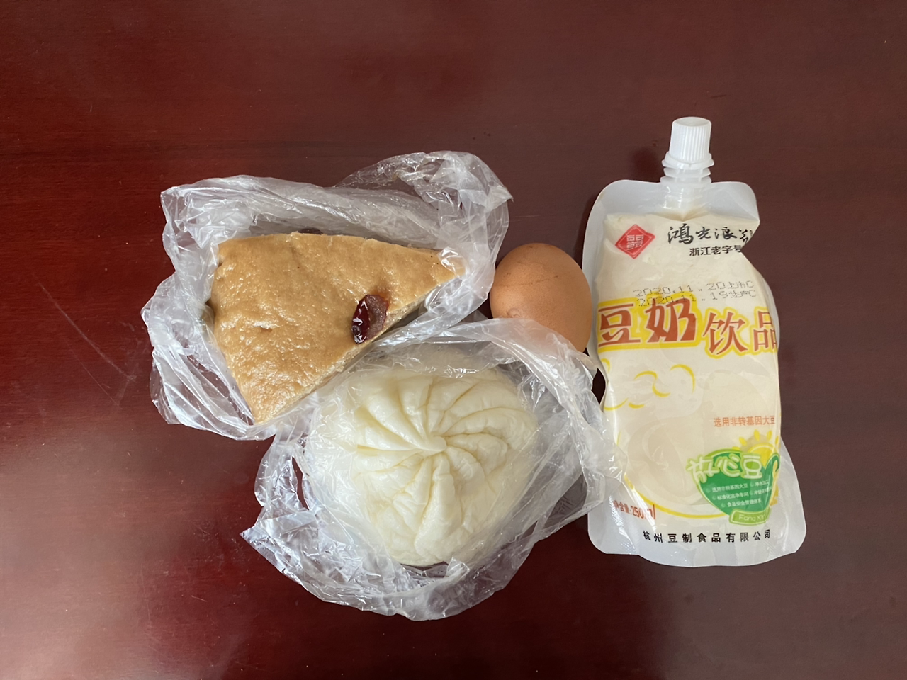 1) 아침: 적당히 쫄깃한 요우티아오(油条, 기름에 튀긴 빵), 차가워서 기분 좋게 마신 또우지앙(豆浆, 두유), 달걀, 매우 단 빵