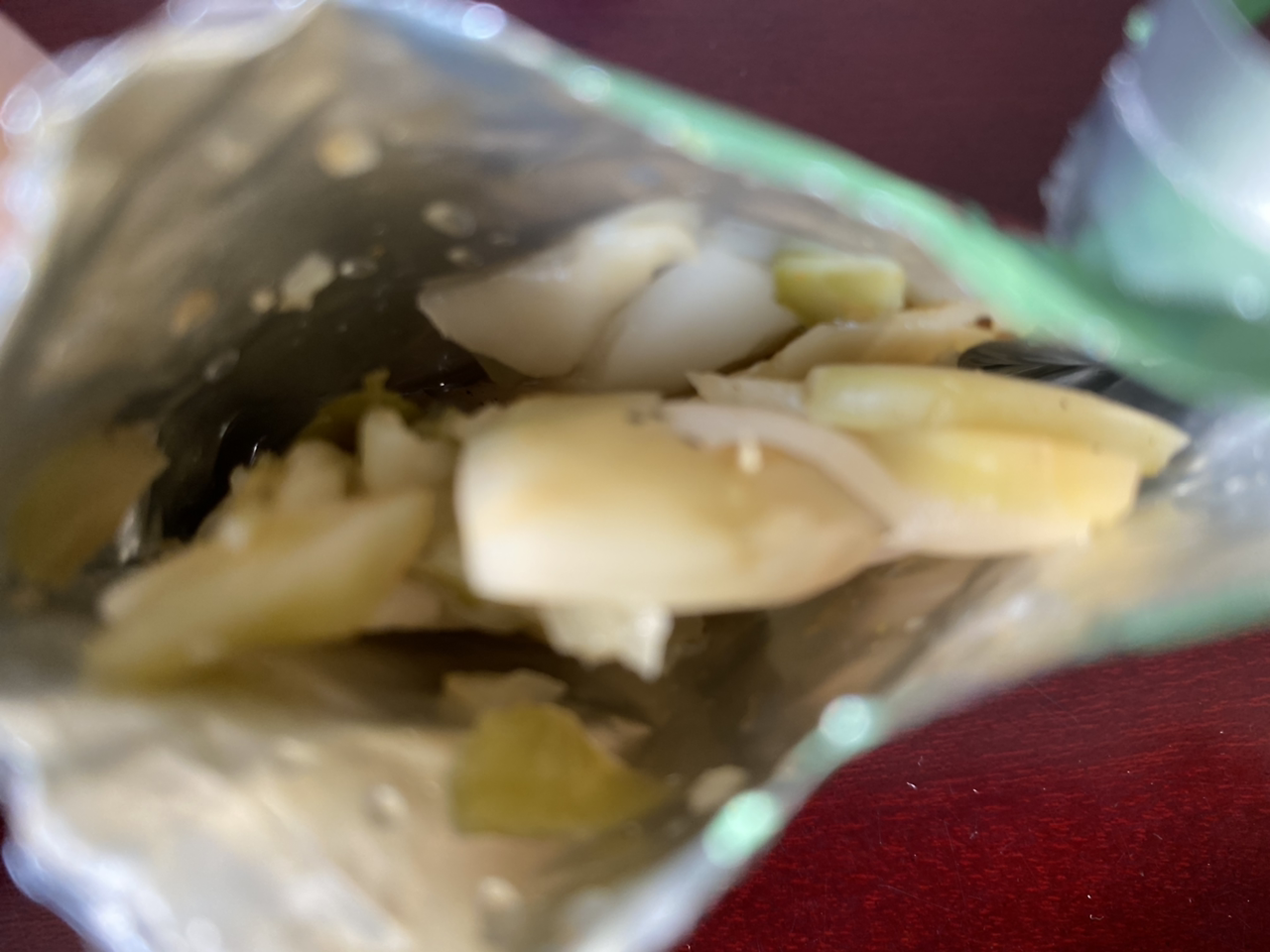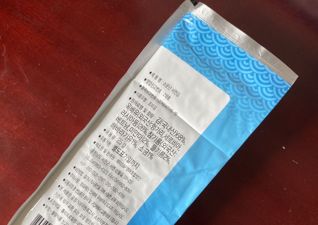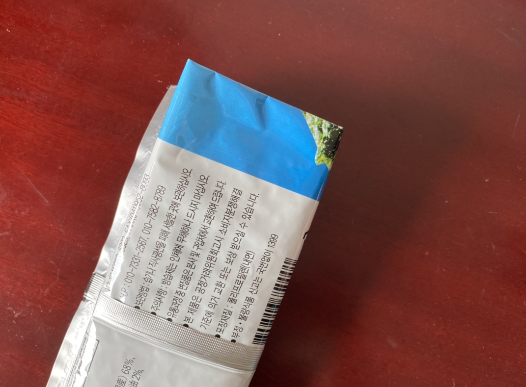 봉투 입구를 가위로 자르면 끄읕. 그리고 남은 김은 고무줄로 봉인. 이 김을 먹으려고 가위랑 고무줄을 일부러 챙겨 왔다.