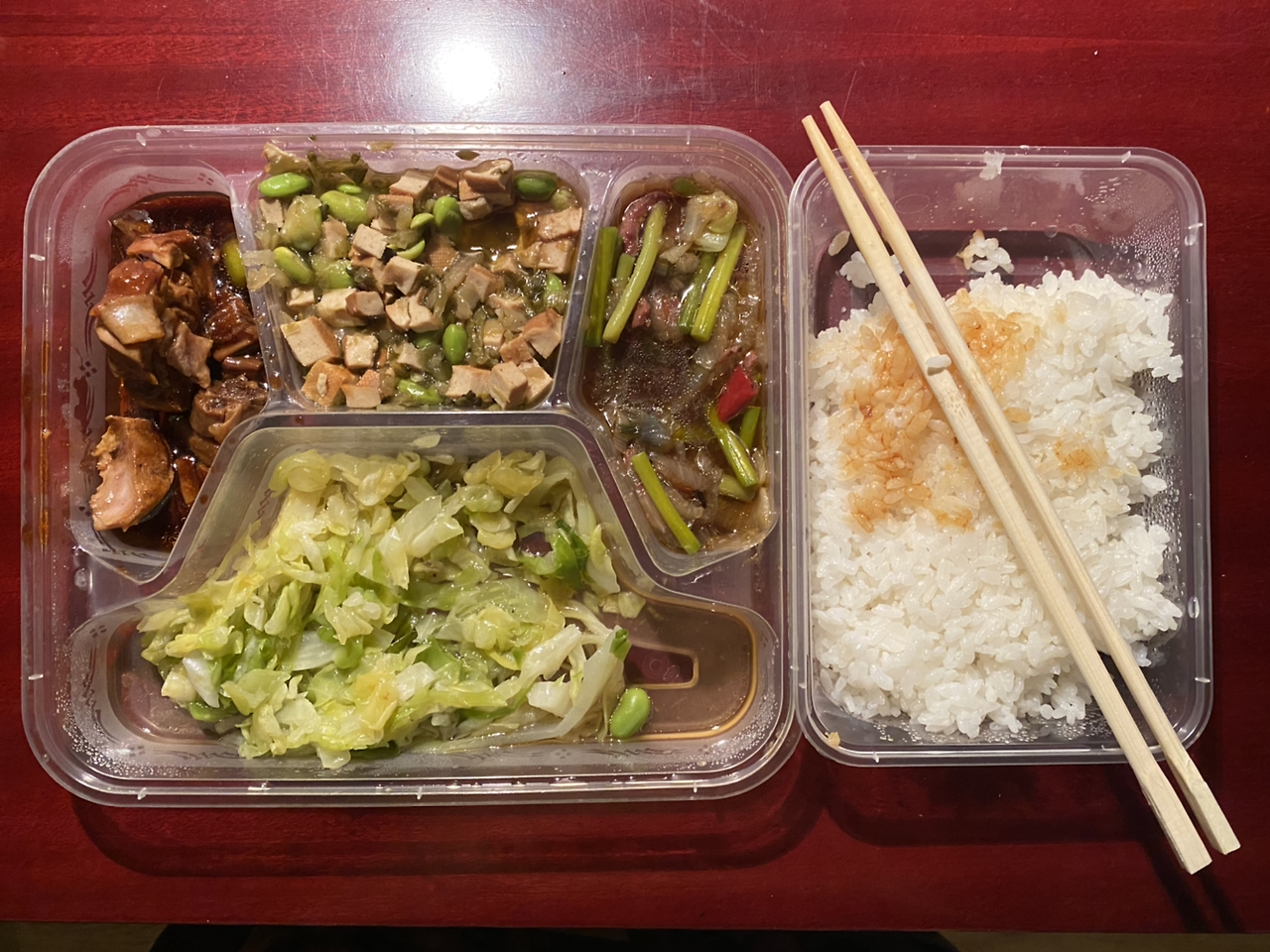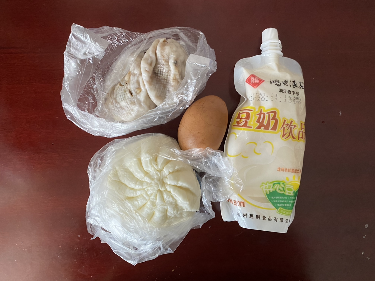 언제나와 같은 또우지앙(豆浆, 두유), 계란, 그리고 만두. 심지어 며칠 전 정말 맛있게 먹어서 다시 나오길 기다린 야채버섯 만두다. 오른쪽 만두는 약밥 같은 느낌. 그런데 음식이 잘 안 먹힌다. 야채만두도 속만 먹고 말았고, 약밥 만두는 두 입 정도 먹다가 내려놨다. 어제 저녁부터 입맛이 없다.