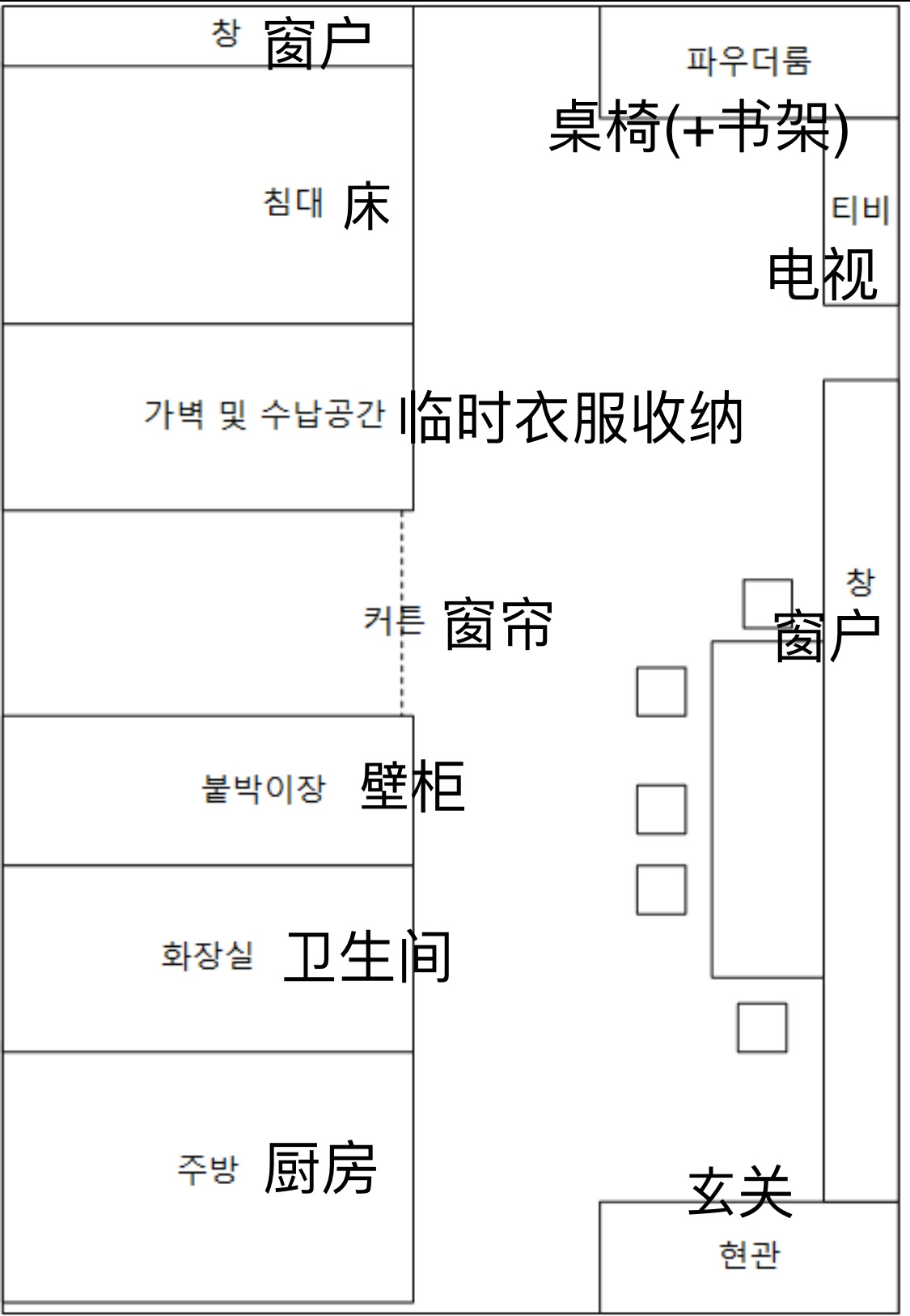 가벽이라는 단어를 못 찾아서 ‘임시 의류 수납(临时衣服收纳)’이라고만 썼는데 혹시나 무슨 의미인지 모를까 봐 참고용 사진도 준비했다.
