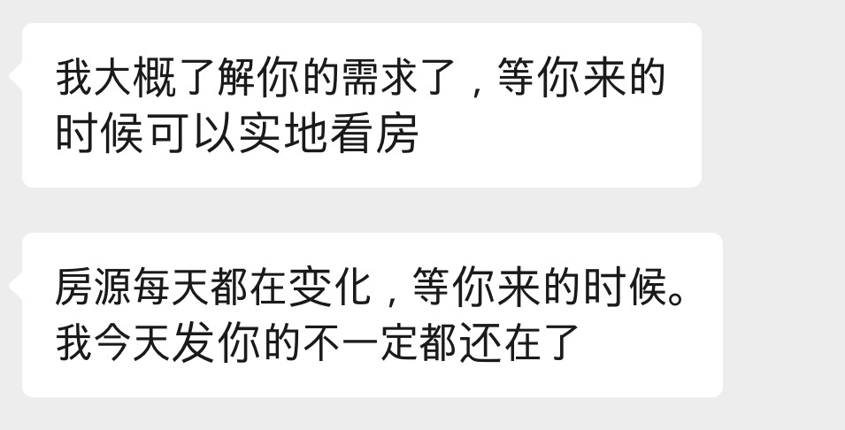 매물(房源 fángyuán)이 시시각각 바뀌니 격리 해제 후 실제 방 보러 갈 때(实地看房 shídì kànfáng)까지 내가 원하는 형태의 방을 최대한 많이 찾아두겠다고 한다.