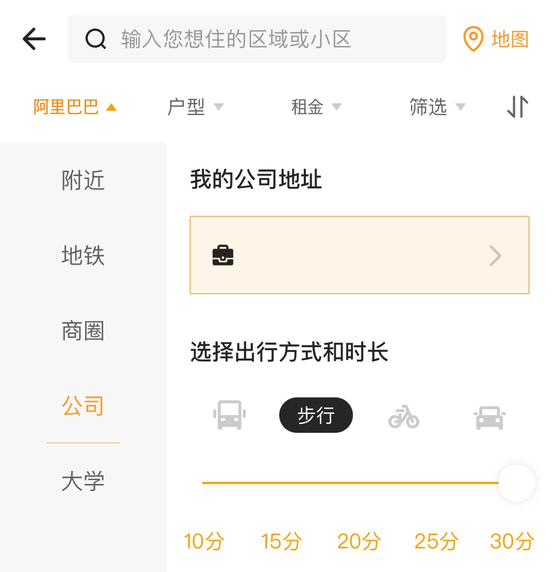 쯔루 앱에는 미니 프로그램에 없는 기능이 있었다. 바로 회사, 대학교 기준으로 검색! 특히, 회사 기준으로는 도보, 자전거, 대중교통 몇 분 거리까지인지 설정 가능. 나같이 어느 지역에서 방을 구해야 할지 모르는 사람에게는 시간을 엄청 절약해주는 기능!!