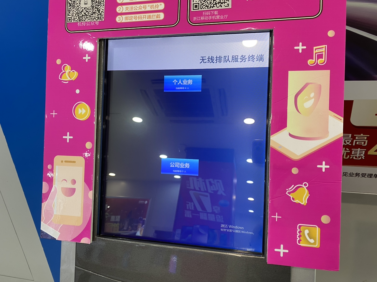 도착하면 제일 먼저 번호표를 뽑는다. 개인업무(个人业务)를 누르면 되고 현재 대기인원 수도 보여준다.