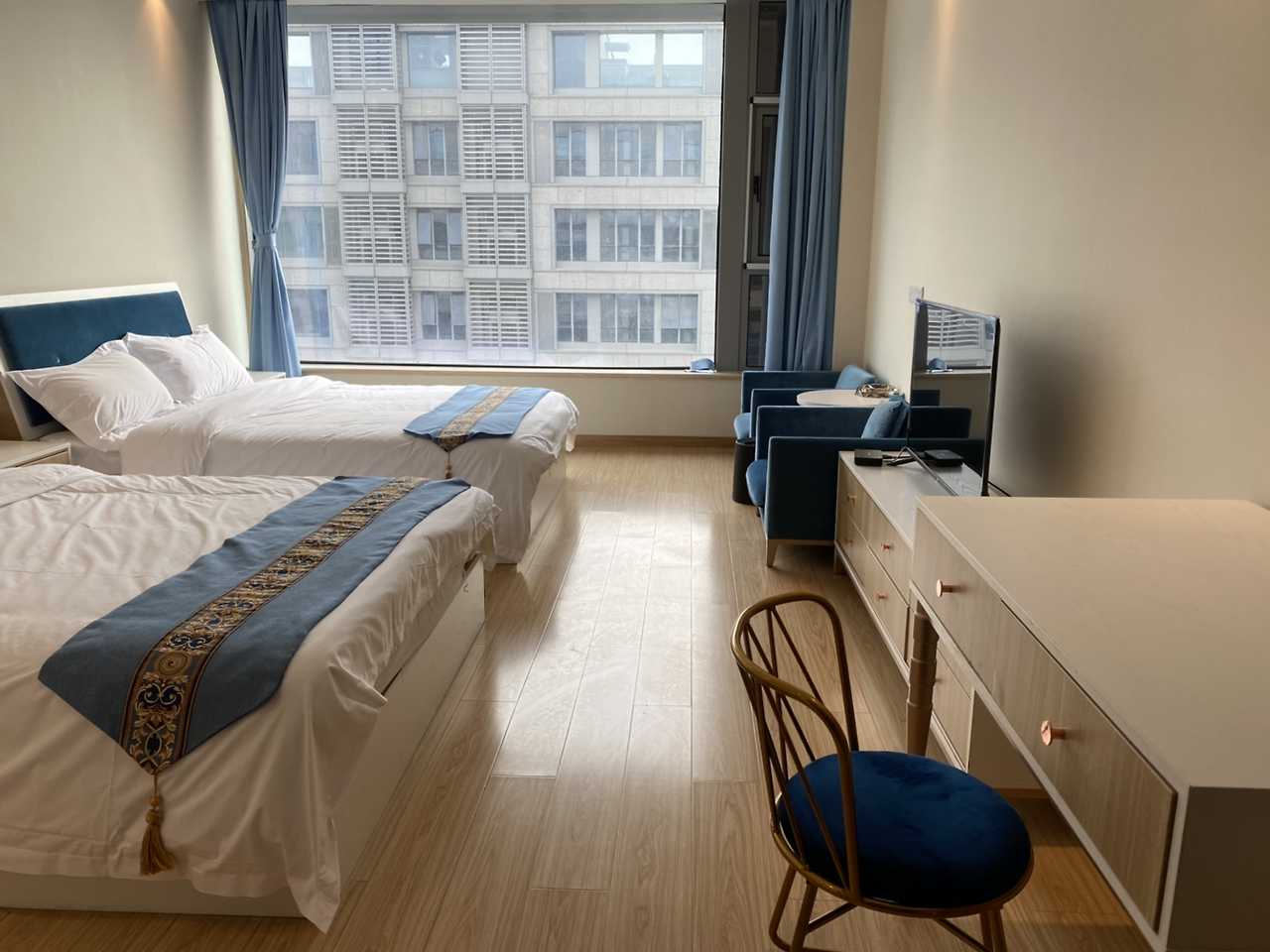 더블룸 형태의 호텔로 쓰고 있는 방. 또 다른 동인데 이 동은 건너편 건물에서 방 안이 다 보이겠다. 내가 들어와서 살 거면 가구는 1인 형태로 바꿔준단다.