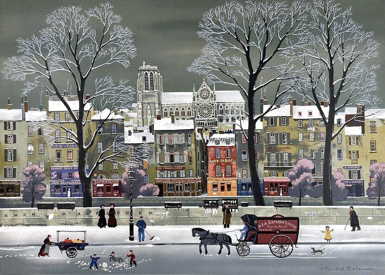 들라크루아의 겨울 도시는 그 모든 온기를 한데 모아 흔든 스노우볼 같다. 밤이 올라탄 하늘 아래 눈송이가 캐럴처럼 후드득 떨어지면, 트리 꼭대기 별도 눈을 깜빡인다. 슈가파우더에 굴린 듯 달콤한 도시.