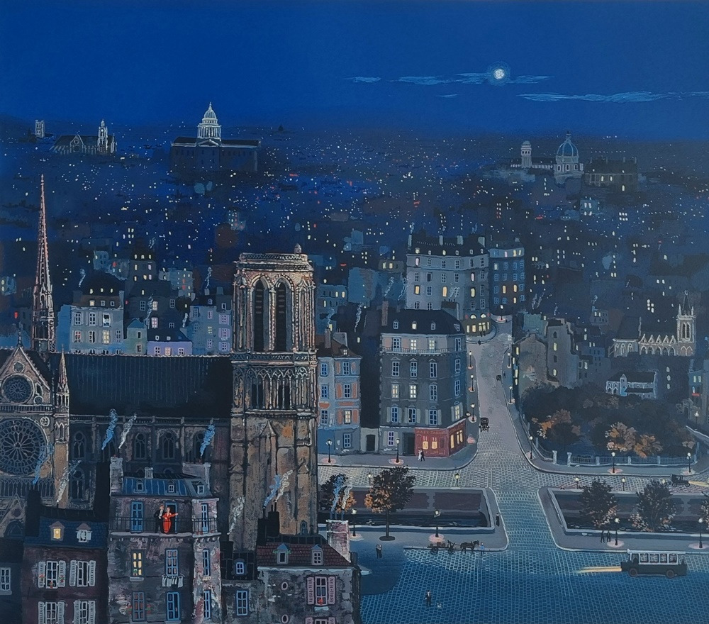 들라크루아의 도시는 보통 아래를 내려다본 시점으로 그려진다. 우리를 풍경 안이 아니라, 풍경 바깥에 올려놓는 자리. 어느 정도 통제 가능한 세계를 위에서 살피는 느낌이다. 집집마다 켜진 창은 “여기는 아무도 완전히 혼자가 아니다”라는 증거처럼 반짝인다. 조용한 거리는 당분간 아무 일도 일어나지 않을 듯 평온하다.
