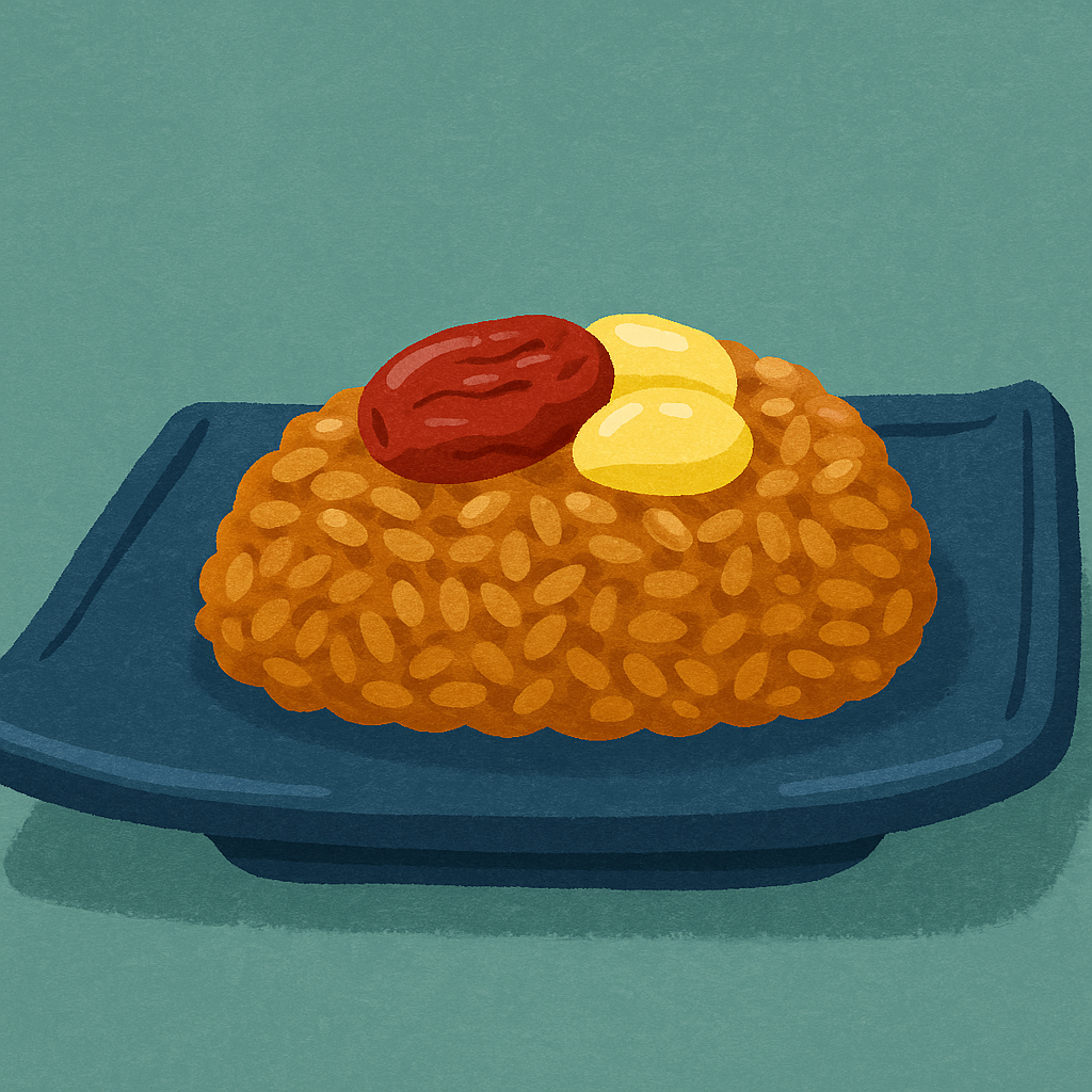 대추, 잣, 밤을 넣고 달콤하게 찌는 음식.