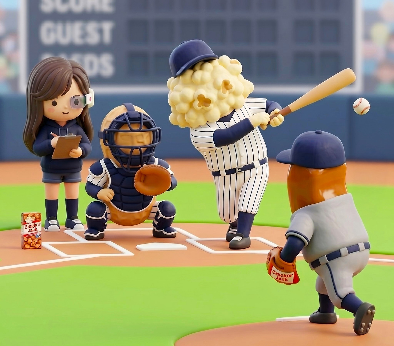 이 표준은 자연스럽게 군중이 모이는 공간으로 스며든다. 야구장도 그중 하나였다. 사람이 모이고, 오래 머물고, 같은 리듬을 반복하는 장소. 크래커 잭은 그런 공간에 어울리는 간식이었다.