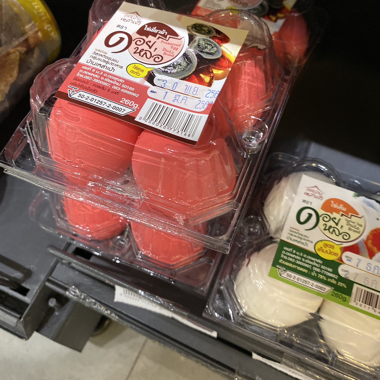 마트를 걷다가 분홍색 달걀 무더기 앞에 멈췄다. 눈을 의심할 만큼 쨍한 핑크색이었다. 한눈에 보기에도, 단순한 염색 수준이 아니었다. 아무리 봐도 부활절 에그 느낌인데, 여긴 불교국가 아닌가? 포장지에 태국어로 뭔가 적혀 있었지만 당연히 해독할 수 없었다. 가격표만 덩그러니 붙어 있는 걸 보며 생각했다.