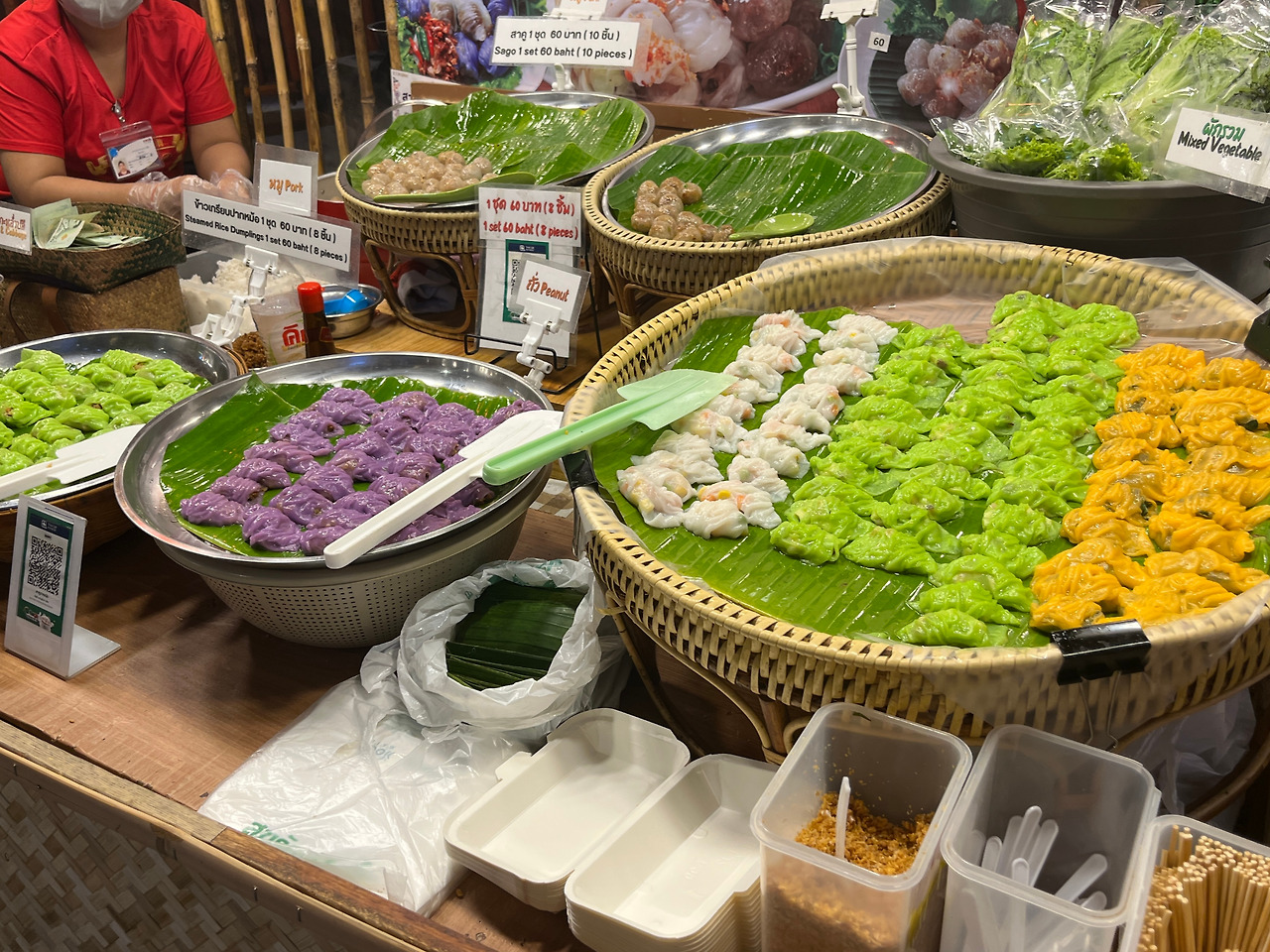 그러고 보면 태국은 음식에 색을 아낌없이 입히는 나라였다. 초록색 라이스볼에는 판다나스 잎이 들어가고, 보랏빛 만두에는 타로 뿌리 색을 담는다. 발효 식품도, 디저트도, 한껏 화려하게 치장한다. 먹기 전에 이미 눈과 코가 포만감을 느끼게 하는 문화.