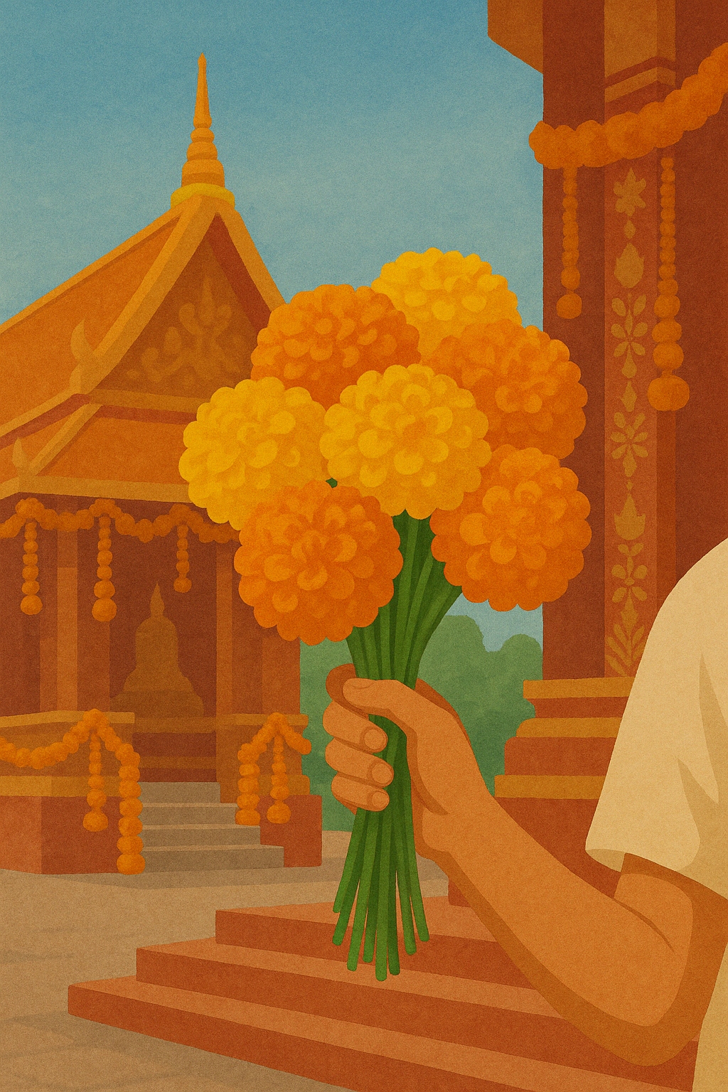여기에 불교 문화가 더해진다. 황금빛 사원, 매리골드 꽃, 알록달록한 제물들처럼, 이 나라는 오래전부터 색으로 세계를 꾸며온 전통을 가지고 있다.