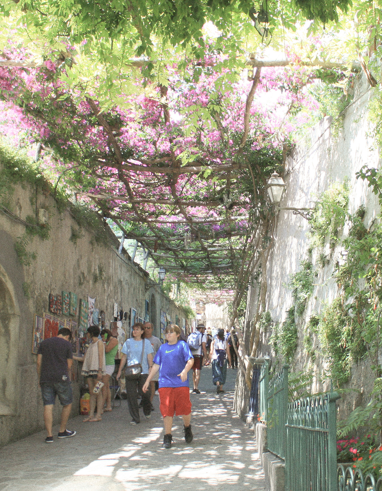 그리고 좀 더 내려가다 보면 자줏빛의 등나무와 레몬 나무가 캐노피처럼 건물과 건물 사이를 이어져 그늘진 구불구불한 산책길들이 나타난다. 햇살이 아주 적당히 뜨겁지 않게 예쁜 눈부심으로 들어오는 아주 매력적인 산책길이었다. 이탈리아의 '라 돌체 비타 - 달콤한 인생'이라는 말을 온몸으로 맛볼 수 있는 게 바로 여기 포지타노가 아닌가 싶다.