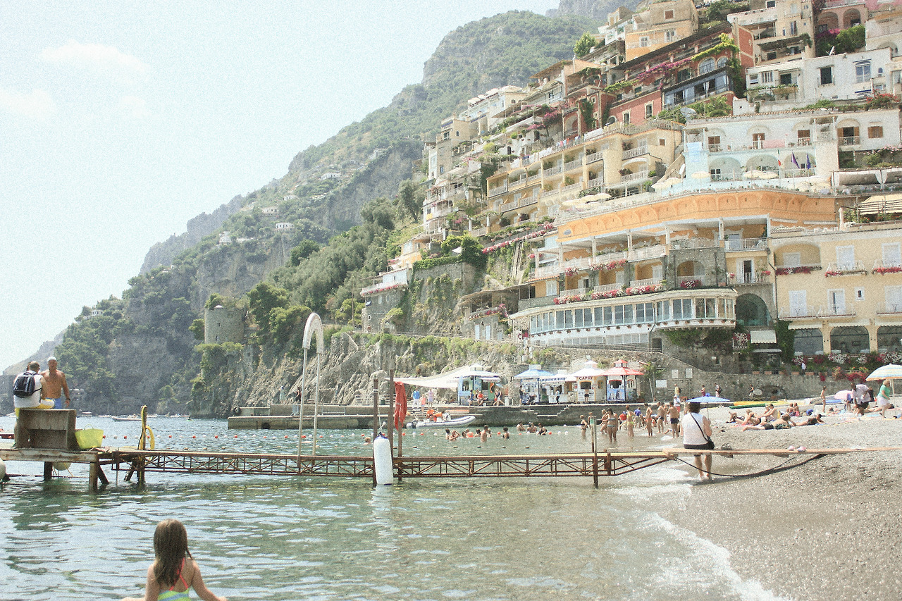 동네를 한 껏 즐기다 보니 어느새 가장 아래의 해안가에 도착했고 그곳은 또 다른 세상이었다. 앞에는 청록빛 바다고 뒤에는 파스텔톤의 다채로운 건물들이 절벽에 붙어있고 휴양 온 사람들이 낙원에 온 듯이 물놀이를 한껏 즐기고 있었다. 당시에 나는 바다 수영을 할 줄 몰랐고 그게 지금까지도 마음에 아쉬움으로 남아있다. 나도 이 지상 낙원을 한껏 즐기고 싶었다. 한국에 돌아가면 반드시 바다수영을 배워서 다시 포지타노에 오겠다고 여러 번 다짐하며 눈으로 보는 풍경들을 사진에 담는 것으로 아쉬운 마음을 조금 달래 보았다.