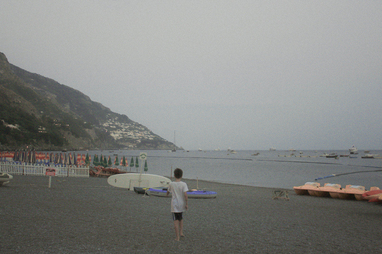 당일로 방문했던 많은 관광객들이 돌아가고 비교적 한적한 바닷가가 되었다. 상점들 주변에 하나둘씩 불이 켜지고 시원한 바람이 불고 음악이 들리니 해변가에 한 없이 앉아있고 싶어졌다. 아주 이국적인, 낯설지만 아름다운 곳에서 바다가 보이는 포지타노 도시 안에 내가 있다는 사실이 꿈만 같았고 해질 녘에 조용한 포지타노를 보니 이 도시가 더욱 마음에 들기 시작했다. 시간이 너무 빨리 가는 게, 하루가 끝나가는 게 너무나 아쉬웠다. 이런 보석 같은 곳을 왜 내가 겨우 1박만 머물 생각을 했는지 행복한 후회도 하면서 포지타노에서는 누구에게 엽서를 써볼까, 누가 남부 마을과 가장 어울릴까 생각하며 밤을 보냈고 한 여름밤의 꿈같은 포지타노의 여행을 마무리하였다.