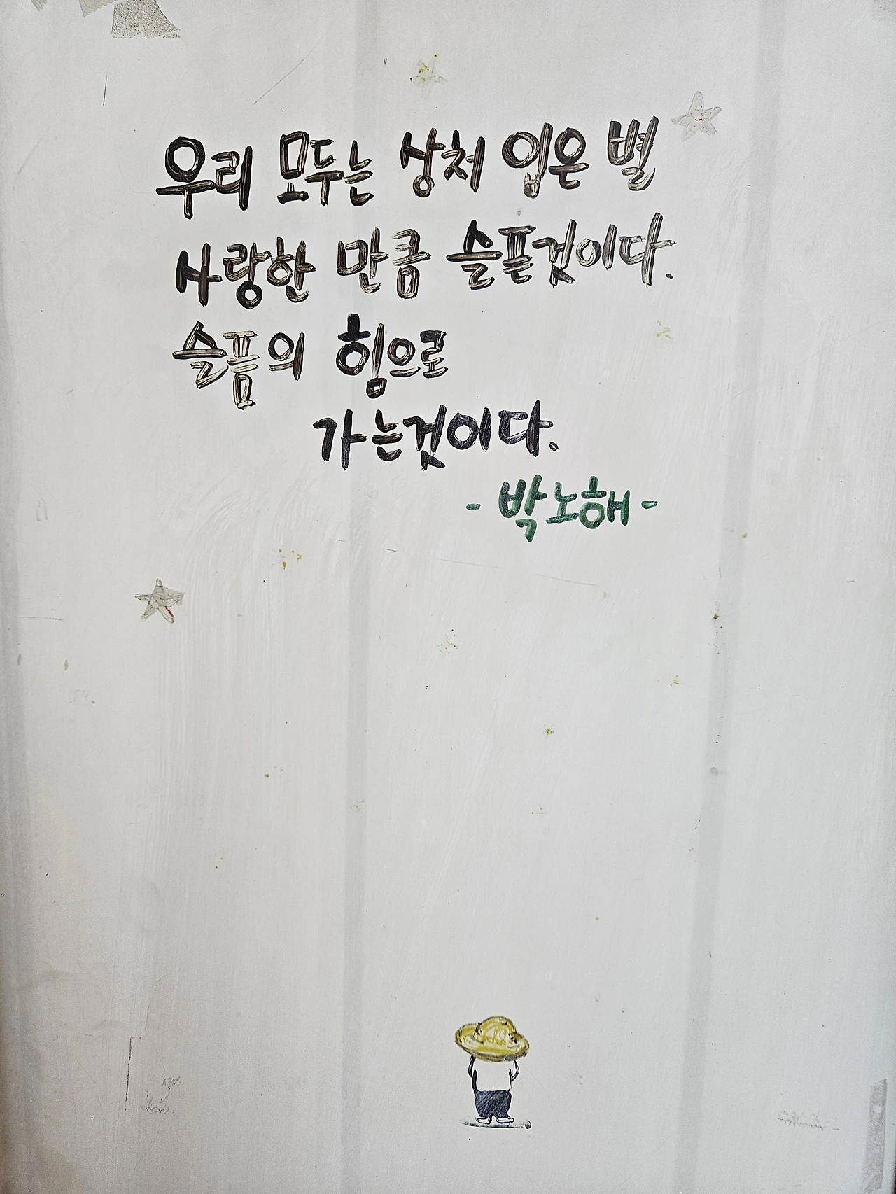 “그 시절, 잘 견뎌줘서 고마워. 보이지 않는 주홍글씨가 새겨진 채, 세상의 낙인과 그것보다 더 무거웠던 스스로를 향한 미움 속에서 고통받았던 네가 있었기에 오늘의 내가 이렇게 축복받은 삶을 살고 있단다. 너는 이런 모습을 상상도 못 했겠지? 괜찮아, 이제 그 지독했던 감옥의 시간은 끝났어. 남은 것은 그저 인생의 흐름에 몸을 맡겨, 훨훨 날아가는 일이야.”