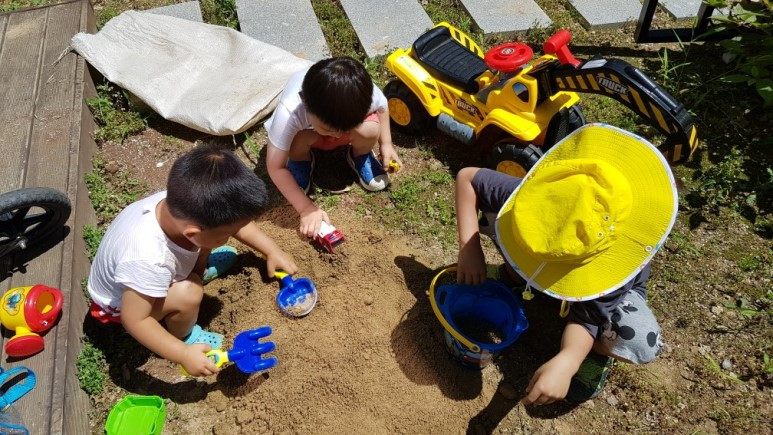집 앞 작은 마당이 있어 굳이 멀리 찾아 나서지 않아도 아이는 매일같이 흙을 만지고 햇빛을 쬔다.