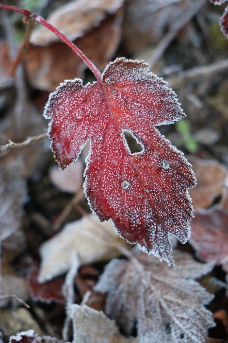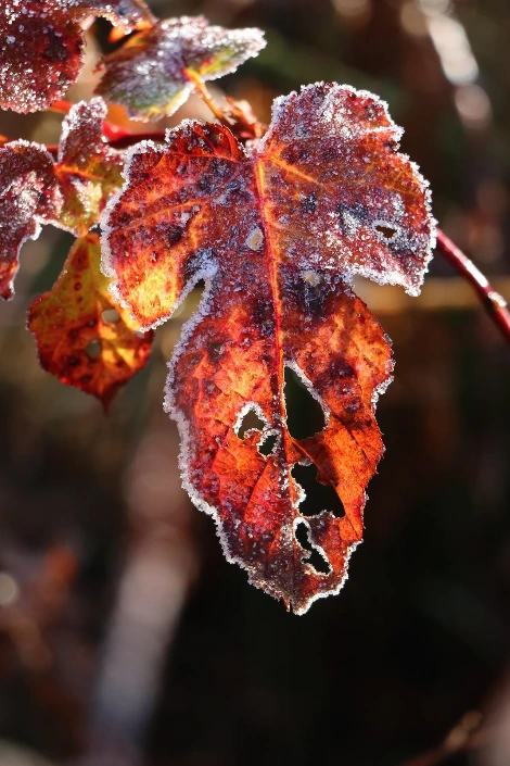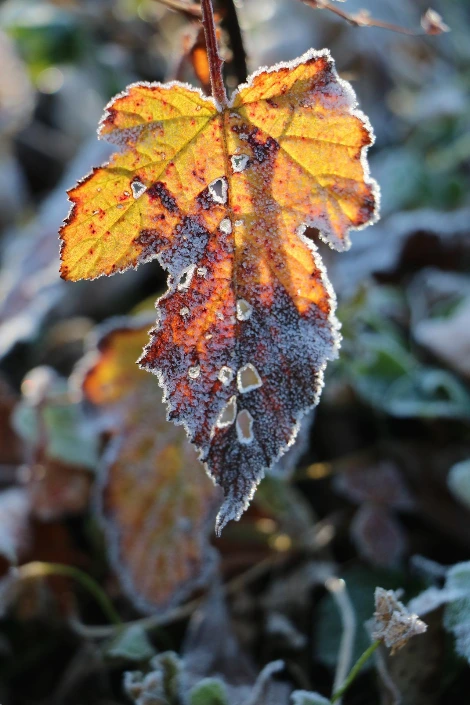 밤사이 떨켜가 나뭇잎을 잡은 손을 놓지 않았다.