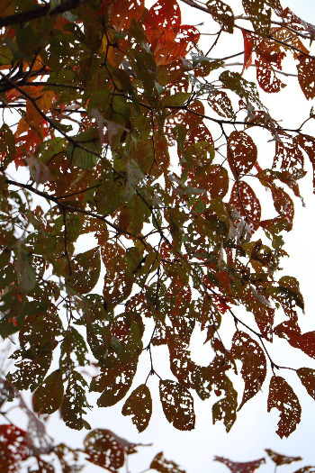 나뭇가지마다 온통 먹다 남긴 나뭇잎 투성입니다.