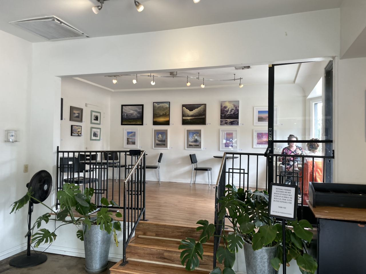 차가 막히지 않을 때는 15분에 불과한 거리여서 무리없이 한 카페를 목적지로 정했으나, 오전 9시에도 출근 트래픽은 여전했다. 막히는 고속도로 위에서 꼼짝없이 30분 갇혀있다 보니 오고자 했던 카페에 도착했다. 졸음을 참아가며 30분 동안 운전할 때는 새로운 카페에 가는게 무리수였다고 지난 밤의 결정을 자책했으나, 막상 와보니 산뜻한 기분이 들었다. 처음 와본 카페 벽면에는 그림이 빼곡하게 걸려있었는데, 가까이 가서 들여다 보니 작가들이 직접 그린 그림으로 카페에서 구매까지 가능했다. 그림 보는 재미가 쏠쏠했다.