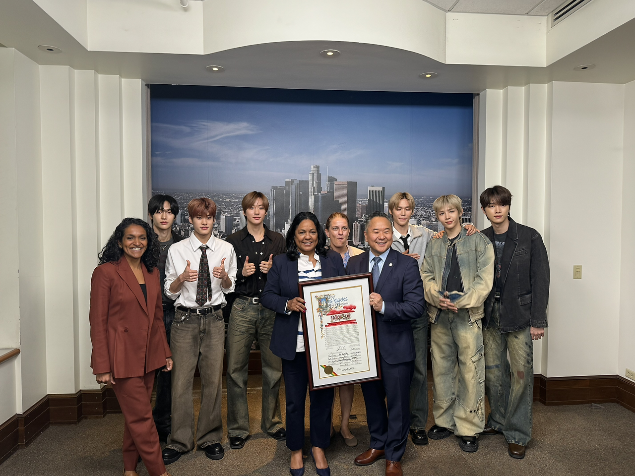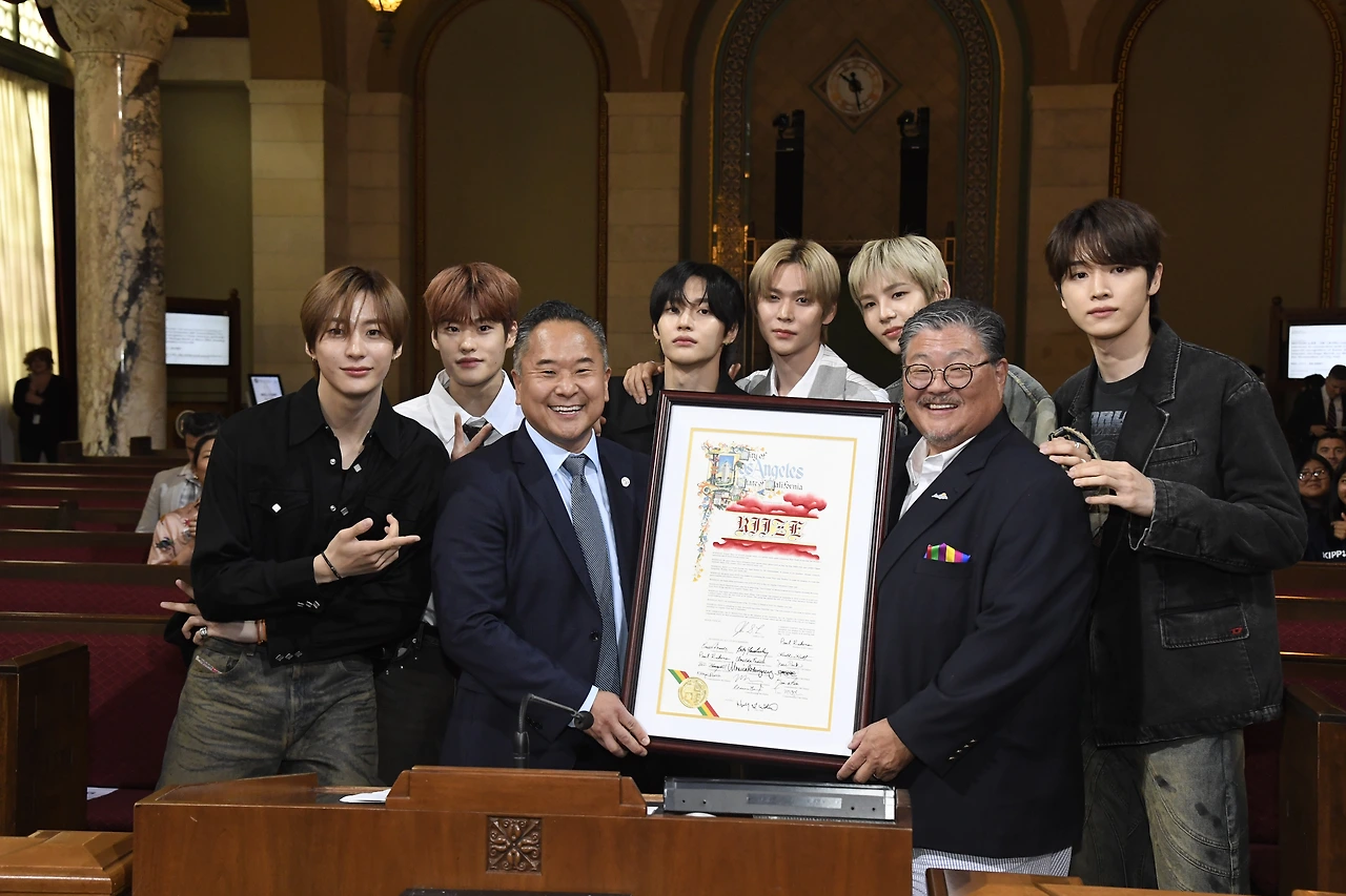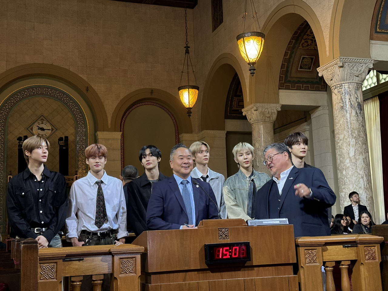 며칠 지나지 않아서는 SM 엔터테인먼트가 지난해 데뷔시킨 보이 그룹 '라이즈'(RIIZE)가 시청에 방문했다. 그룹 '라이즈'는 LA에서 데뷔곡인 '겟 어 기타' 뮤직비디오를 촬영했고, 'KCON LA 2023'에서 첫 데뷔무대를 선보였다. 게다가 최근 LA 관광청의 홍보 영상에도 '라이즈'의 '겟 어 기타' 곡이 BGM으로 사용됐다. 이처럼 LA와 특별한 연이 있는 '라이즈'의 공로를 축하하는 감사패를 전달하기 위해 LA시의회는 '라이즈'를 초청했다.