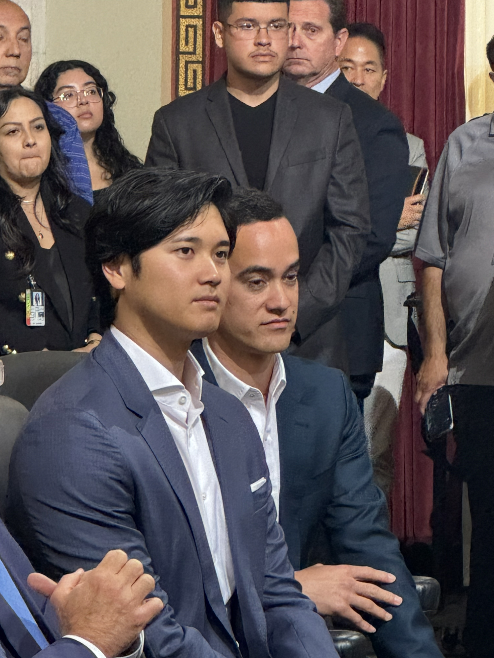사진으로 보여지듯이 슈트를 입은 오타니 선수는 멋져도 너무 멋졌다. 키는 얼마나 크던지 미국에서 아시안이 다른 사람들과 비교해 그렇게 압도적으로 큰 모습은 처음 본 것 같다. 시청에 있는 사람들도 오타니 선수가 잘생겼다며, 키가 크다며 저마다 눈을 반짝이며 그를 쳐다봤다.