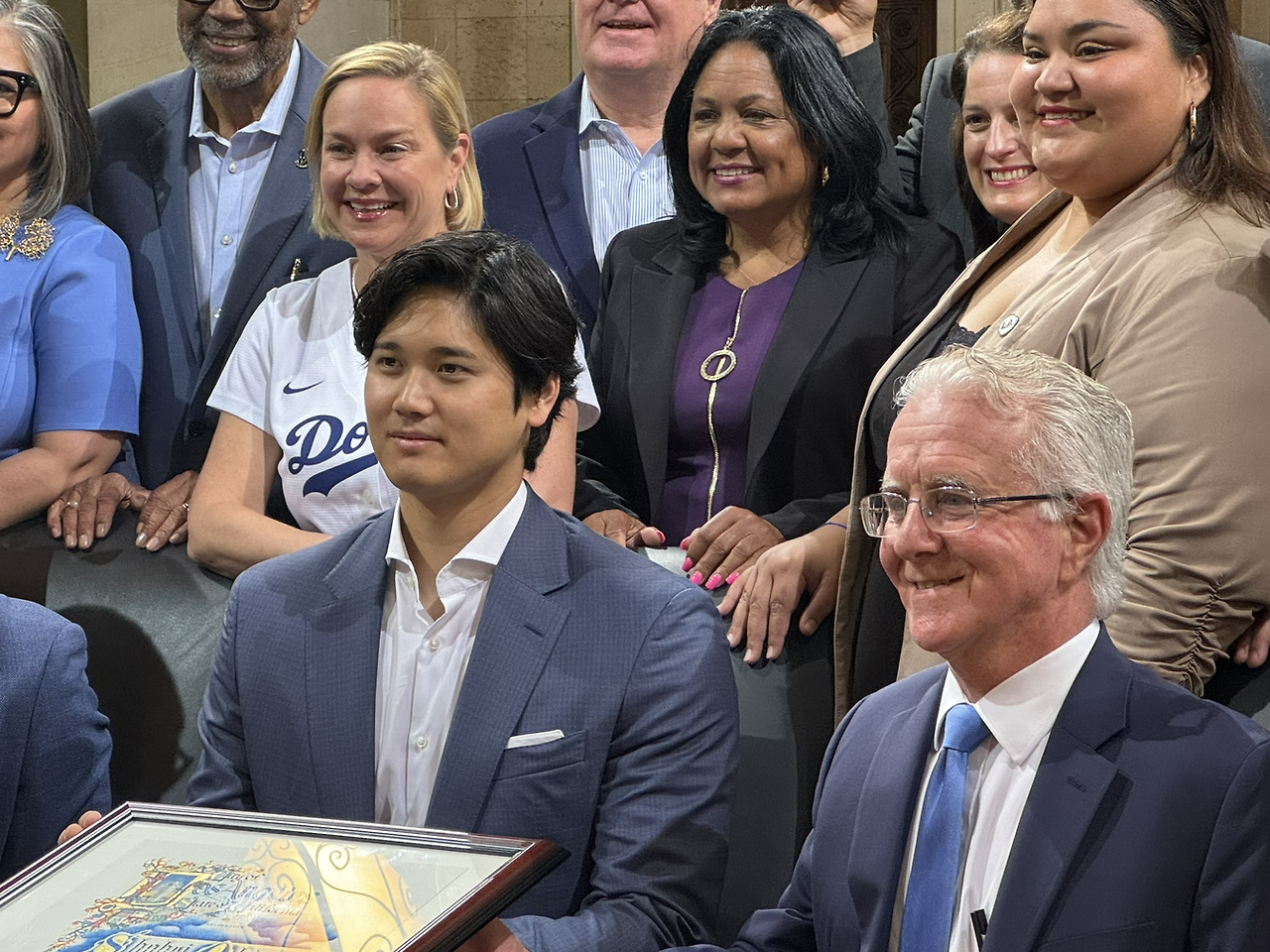 이날은 5월17일로 LA 시의회는 이날을 '오타니의 날'로 제정했다. 이에 오타니가 감사 인사를 전하고자 시청에 방문해 프레젠테이션을 했다.