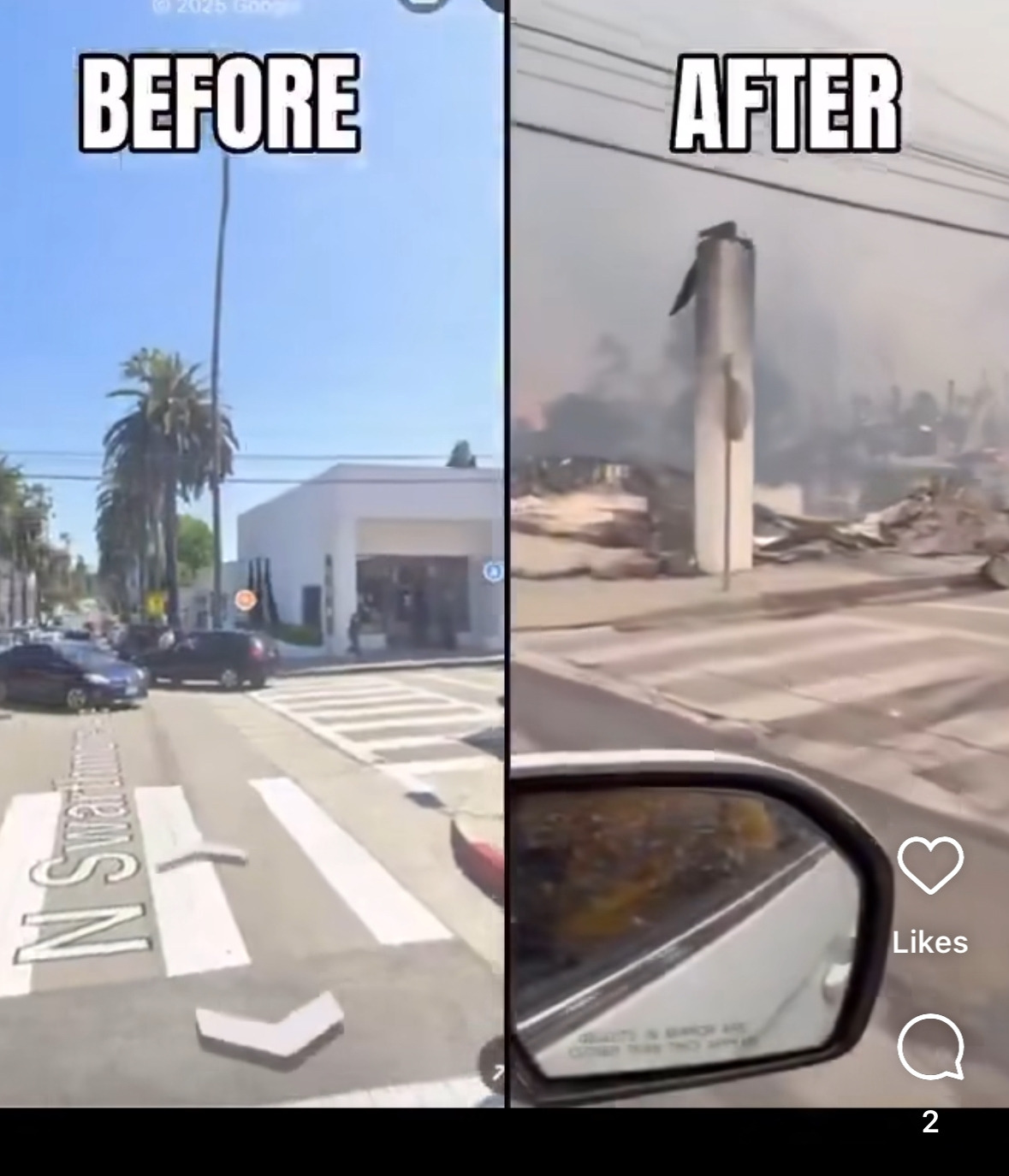 사실 LA에서 매년 이맘쯤이면 샌타 애나 강풍이 불어오고, 이로 인한 산불 화재는 꾸준히 발생했다. 하지만 이번 산불 피해가 역대급인건 규모도 규모지만, 불이 산만 태운게 아니라 사람들의 주거지역을 불태웠다는 점에서 충격적이다. 수천개의 집이 이번 화재로 불탔다. 팰리세이드 빌리지라는 관광객들이 많이 찾는 야외 쇼핑몰도 온데 간데 없이 사라졌다.