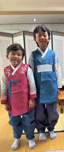 그런데 올해 2025년 1월1일 설날 차례상에는 우리 가족도 참석할 수 있었다. 마침 아이들의 겨울방학을 맞아 한국으로 겨울 휴가를 갔기에 가능한 일이었다. 두 아들에게 한복을 입히고, 아침부터 한껏 설날 기분을 냈다.